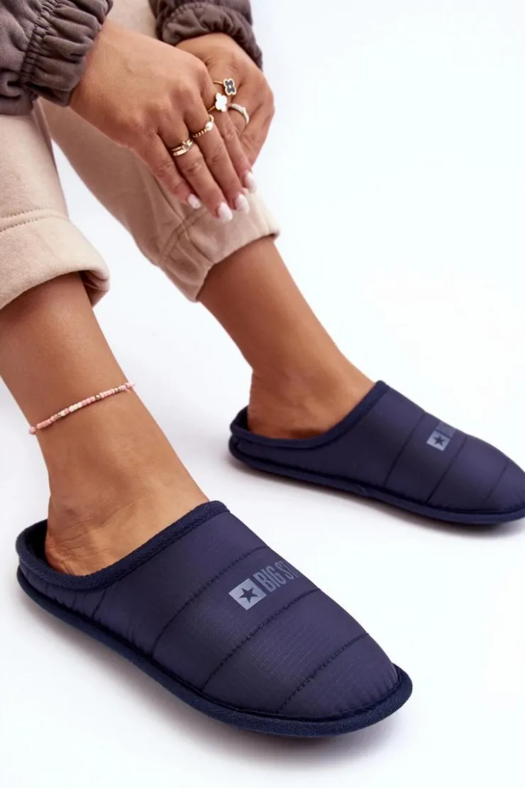 Damskie Big Star Shoes Damskie Klasyczne Papcie Granatowe Big Star KK274601