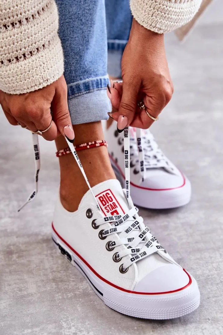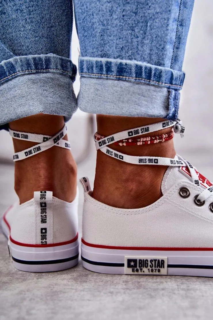 Ponadczasowe trampki damskie marki Big Star zostały wykonane z materiału tekstylnego. Posiadają gumowy, wzmacniany nosek. Model charakteryzuje się logowanymi sznurowadłami. Podeszwa wraz z platformą wykonane z gumowego tworzywa, dzięki którym model ten jest antypoślizgowy. Wkładka materiałowa. Klasyczne trampki z pewnością świetnie będą prezentować się w wielu stylizacjach. Przy wyborze rozmiaru prosimy sugerować się tabelą rozmiarów.