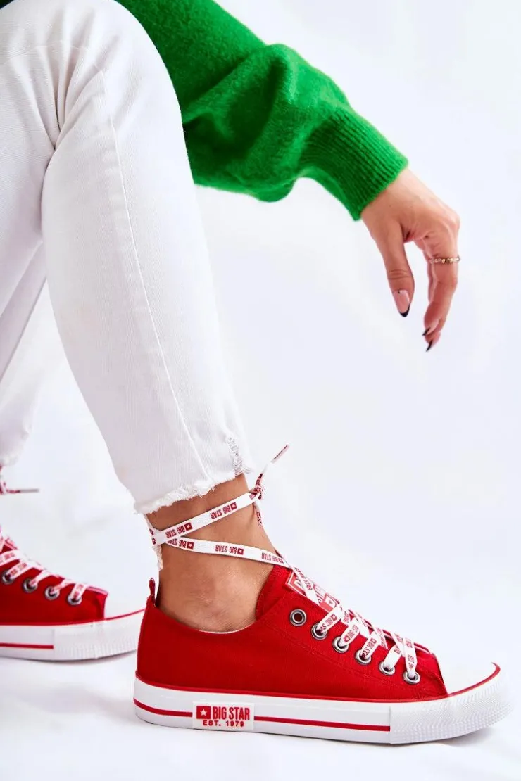 Damskie Big Star Shoes Damskie Materiałowe Trampki Big Star KK274104 Czerwone