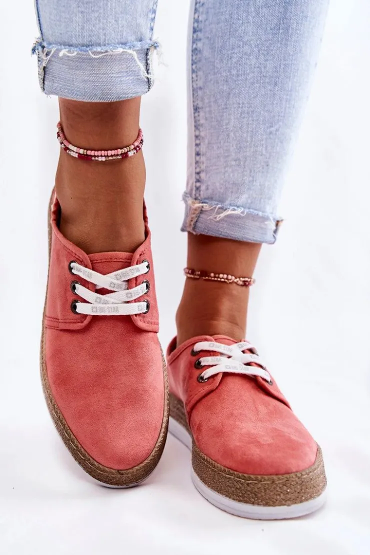Niskie trampki damskie marki Big Star zostały wykonane z miłego w dotyku eko zamszu. Model wiązany na sznurowadła z logo marki Big Star. Buty zostały osadzone na platformie ozdobionej plecionką z gumowego tworzywa. Wkładka Memory Foam System zapamiętuje kształt stopy, co zapewnia doskonałe dopasowanie, absorbuje wstrząsy oraz jest odporna na odkształcenia. Struktura pianki pozwala na odparowanie wilgoci i regulację temperatury. Ten model powinien być Twój! Przy wyborze rozmiaru prosimy sugerować się tabelą rozmiarów.