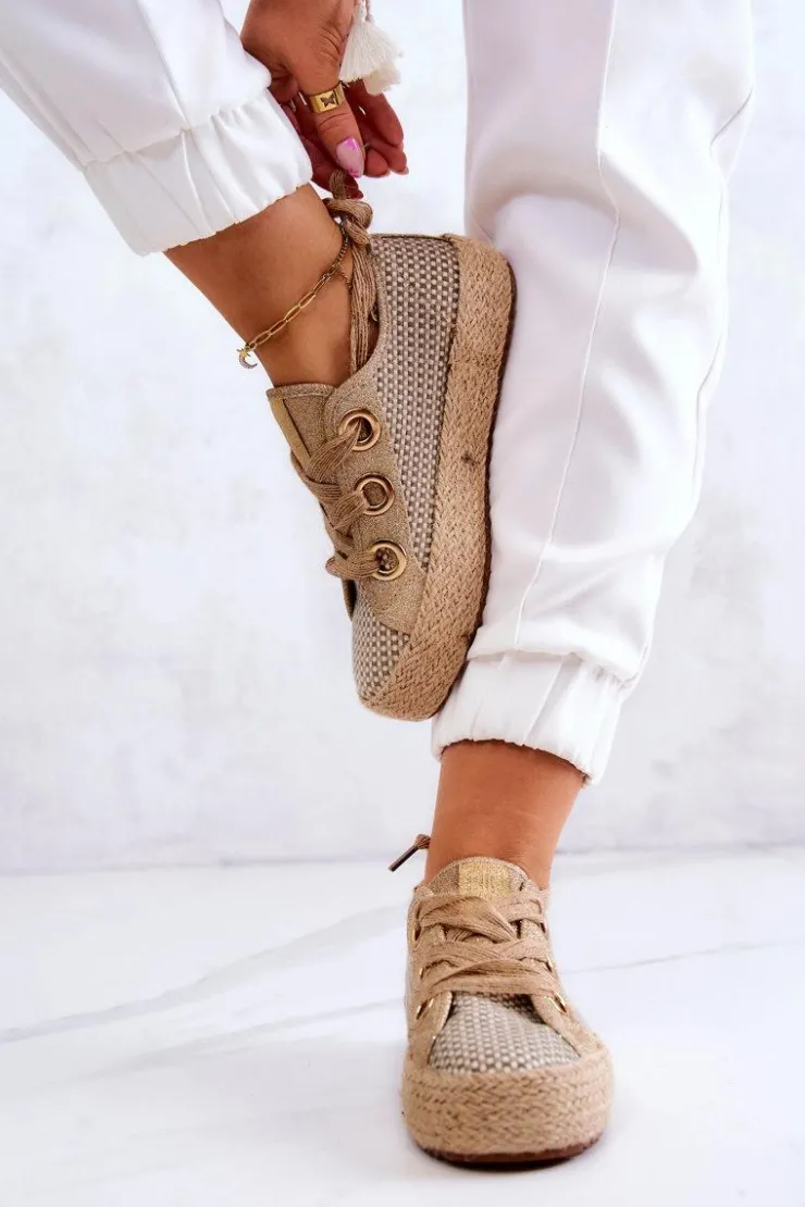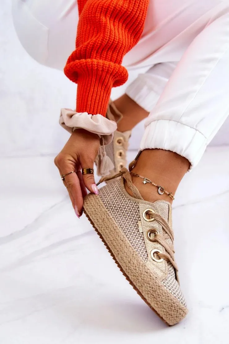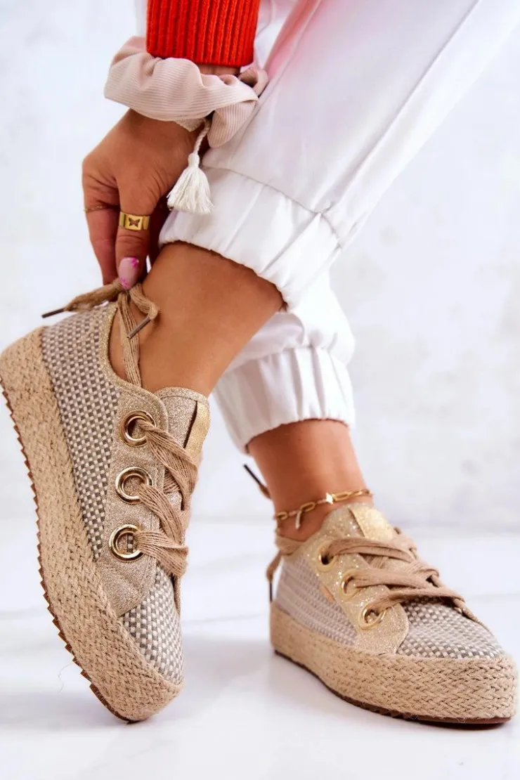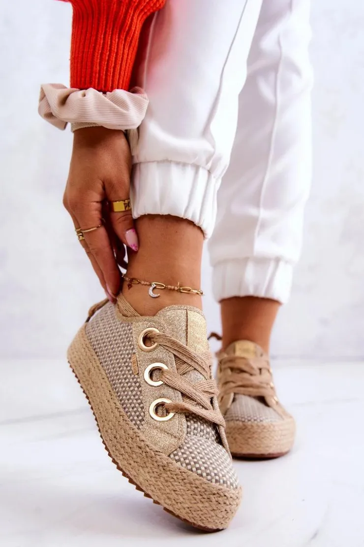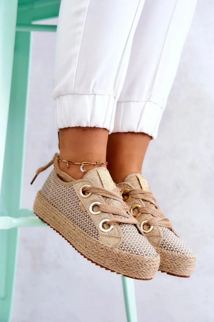 Damskie Big Star Shoes Damskie Plecione Tenisówki Big Star JJ274392 Beżowo-Złote