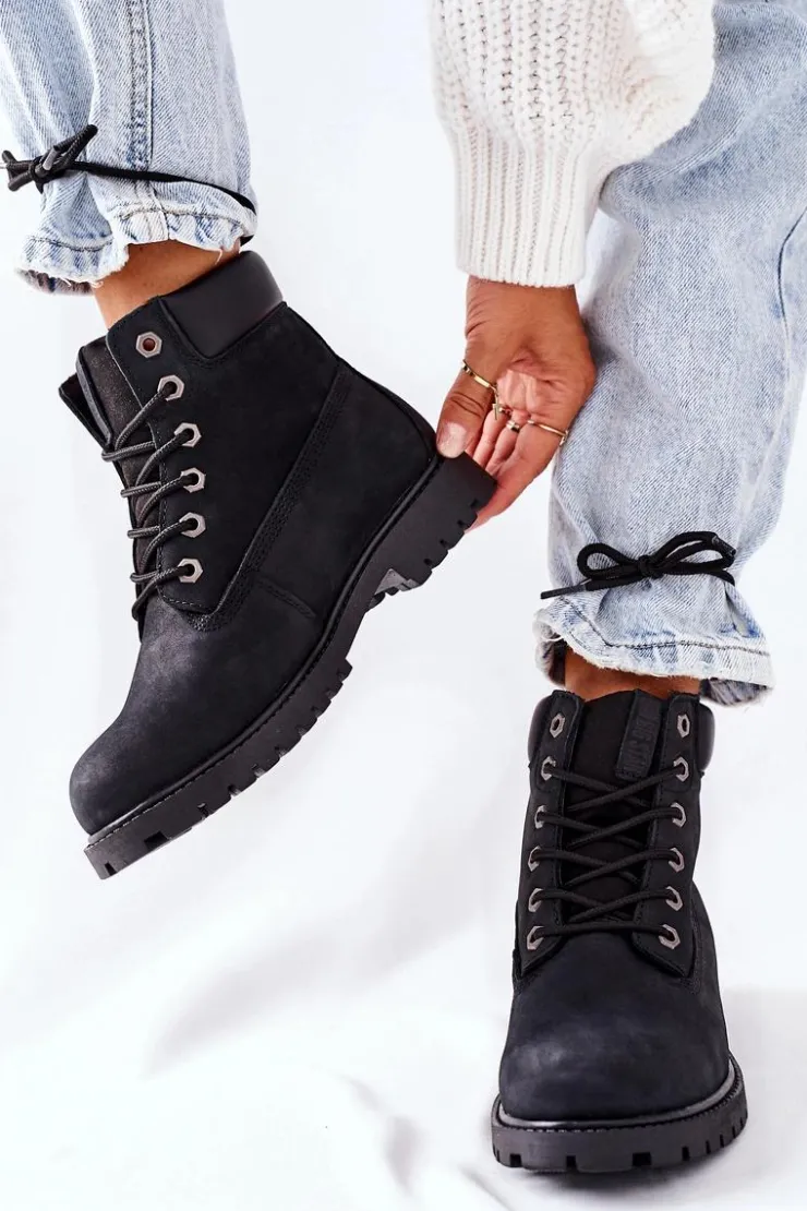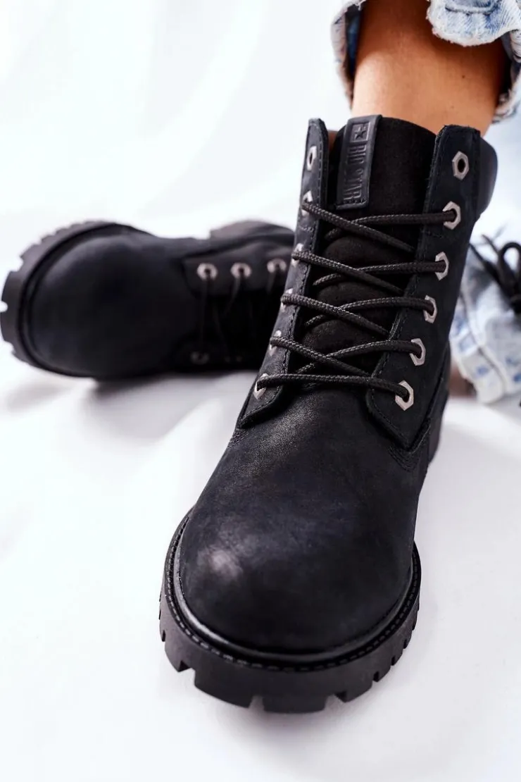 Damskie Big Star Shoes Damskie Skórzane Trapery Big Star II274446 Czarne