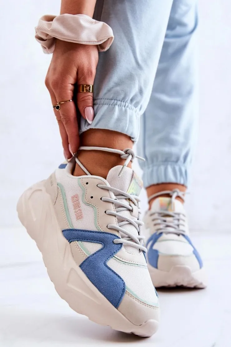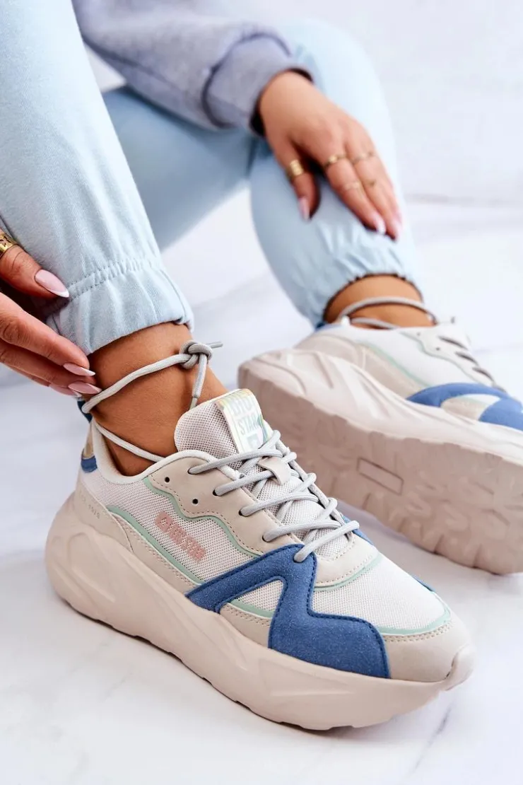 Lekkie buty sportowe marki Big Star. Posiadają klasyczne wiązanie na okrągłe sznurowadła. Wykonane z połączenia przewiewnej tkaniny, eko skóry i eko zamszu. Wkładka Memory Foam System zapamiętuje kształt stopy, zapewnia doskonałe dopasowanie, absorbuje wstrząsy, jest odporna na odkształcenia oraz pozwala na odparowanie wilgoci i regulację temperatury. Nosek zaokrąglony. Masywna platforma wykonana z z tworzywa sztucznego. Przy wyborze rozmiaru prosimy sugerować się tabelą rozmiarów.