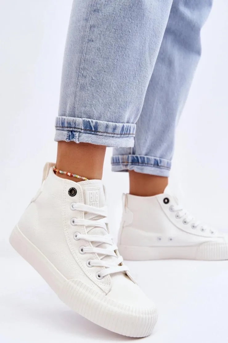 Damskie trampki od polskiej marki BIG STAR z wysoką cholewką za kostkę. Z tyłu posiadają ozdobne logo marki. Buty dobrze dopasowują się do kształtu stopy. Posiadają miękką, materiałową wkładkę. Osadzone na delikatnej platformie z antypoślizgową podeszwą. Model klasycznie sznurowany. Koniecznie sprawdź całą naszą kolekcję butów marki BIG STAR. Przy wyborze rozmiaru prosimy sugerować się tabelą rozmiarów.