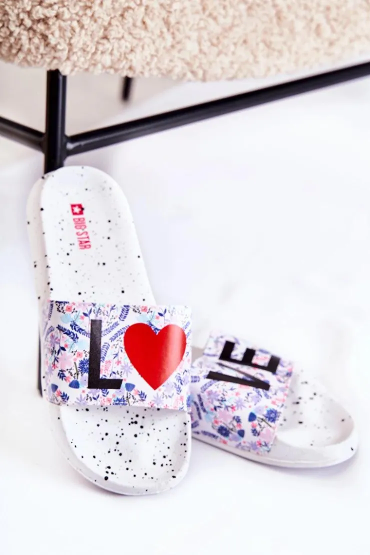 Klapki marki Big Star wykonane w całości z miękkiego gumowego tworzywa. Profilowana wkładka oraz podszyty delikatnym materiałem pasek to gwarancja komfortu. Modny wzór z kropkami oraz napisem LOVE. Przy wyborze rozmiaru prosimy sugerować się tabelą rozmiarów.