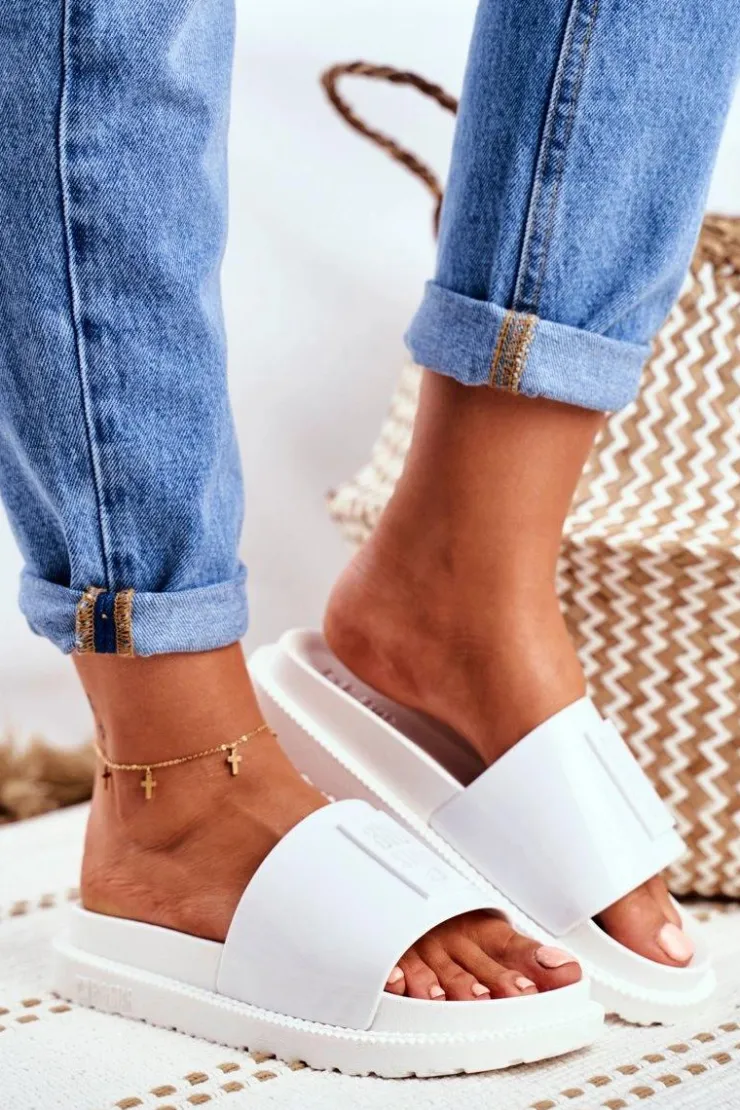 Damskie Big Star Shoes Klapki Damskie Big Star na Platformie Białe FF274812