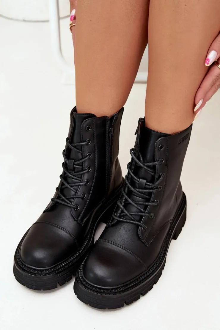 Botki workery damskie od Big Star to połączenie mody i wygody na chłodniejsze dni. Wykonane z eko skóry, osadzone na platformie z płaskim obcasem, zapewniają stabilność i komfort. Sznurowane i zapinane na zamek, umożliwiają łatwe dopasowanie do stopy. Ocieplane kocem obuwniczym, co gwarantują ciepło, a ich stylowy wygląd sprawia, że doskonale pasują do wielu zimowych stylizacji. Idealne na codzienne wyjścia. Przy wyborze rozmiaru prosimy sugerować się tabelą rozmiarów.