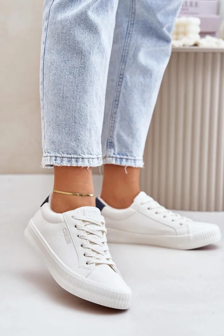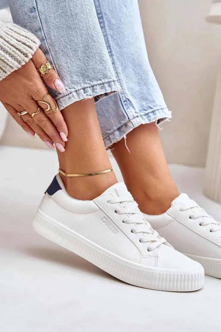 Damskie trampki od Big Star to model wykonane z materiału tekstylnego. Osadzone na podeszwie z gumowego tworzywa. Wnętrze ocieplone przyjemnym kocem obuwniczym, zapewnia ciepło w chłodniejsze dni. Doskonale komponują się z różnorodnymi stylizacjami, co czyni je nieodzownym elementem jesienno-zimowej garderoby! Przy wyborze rozmiaru prosimy sugerować się tabelą rozmiarów.