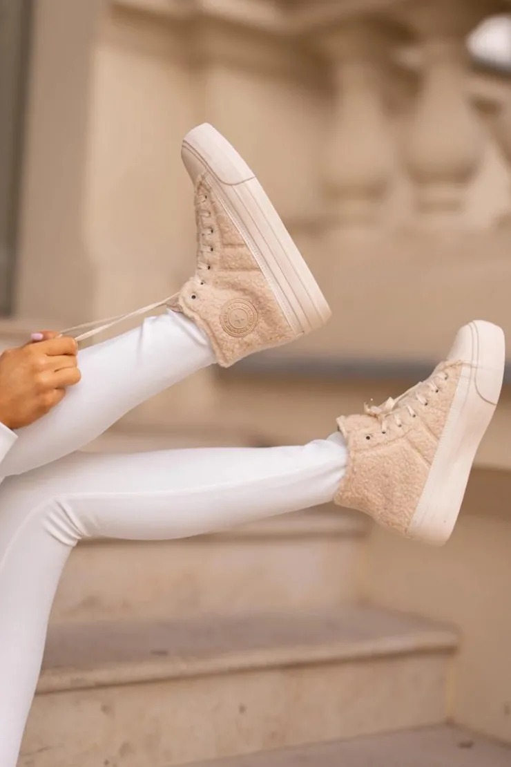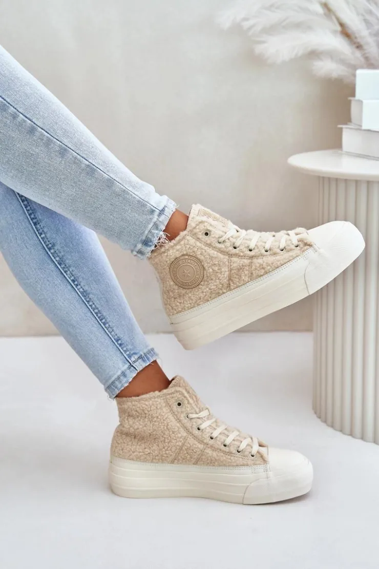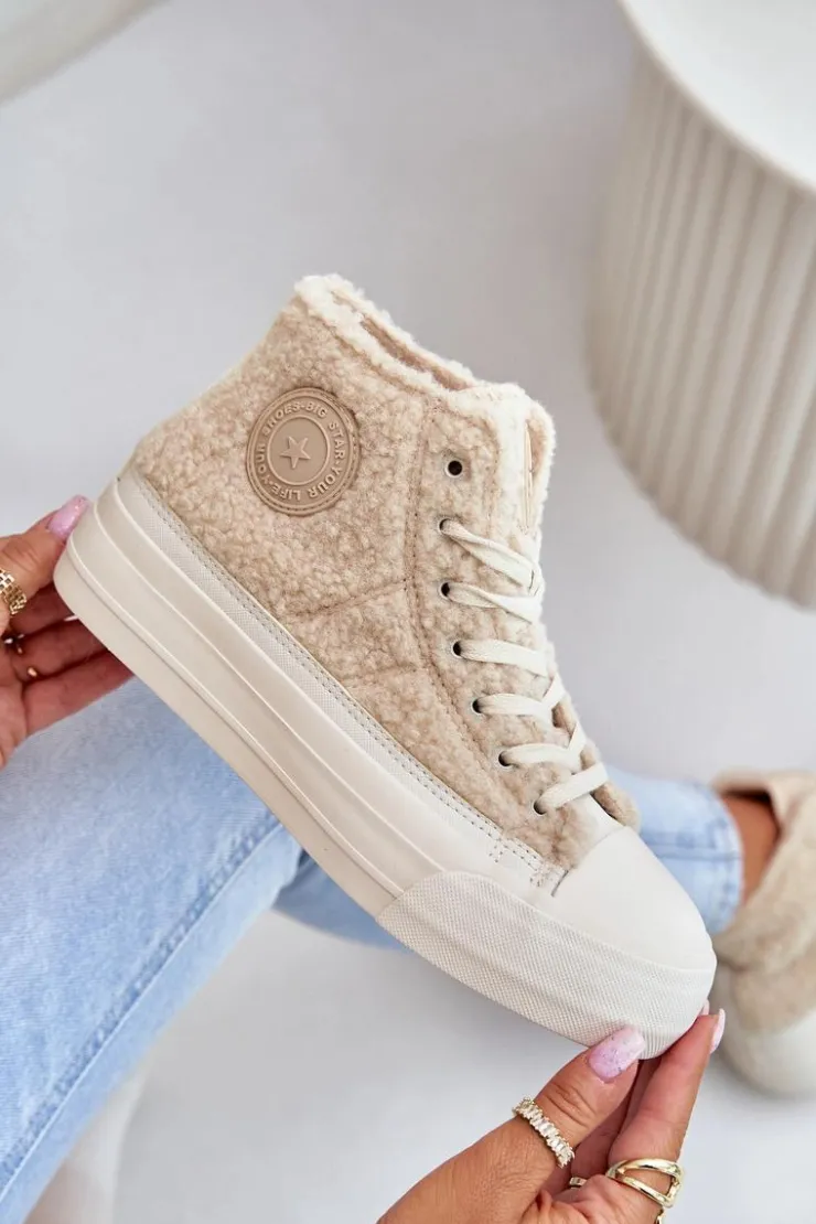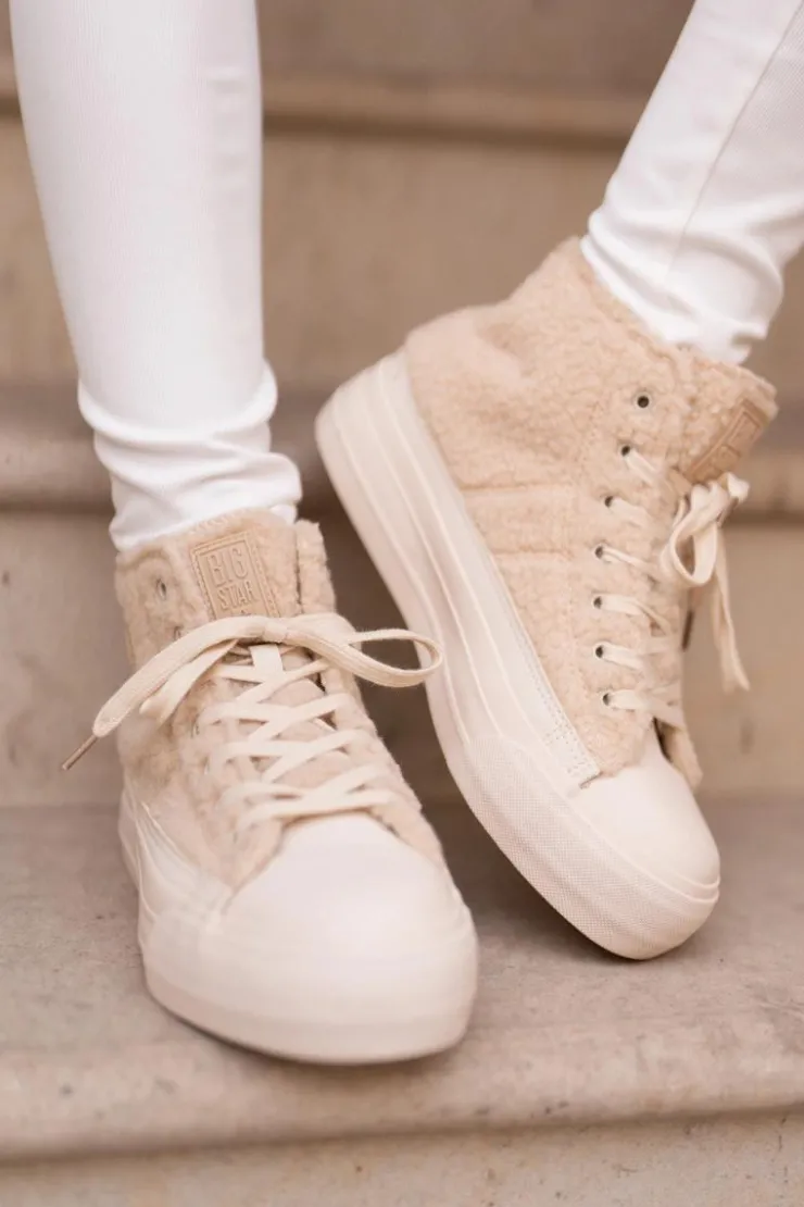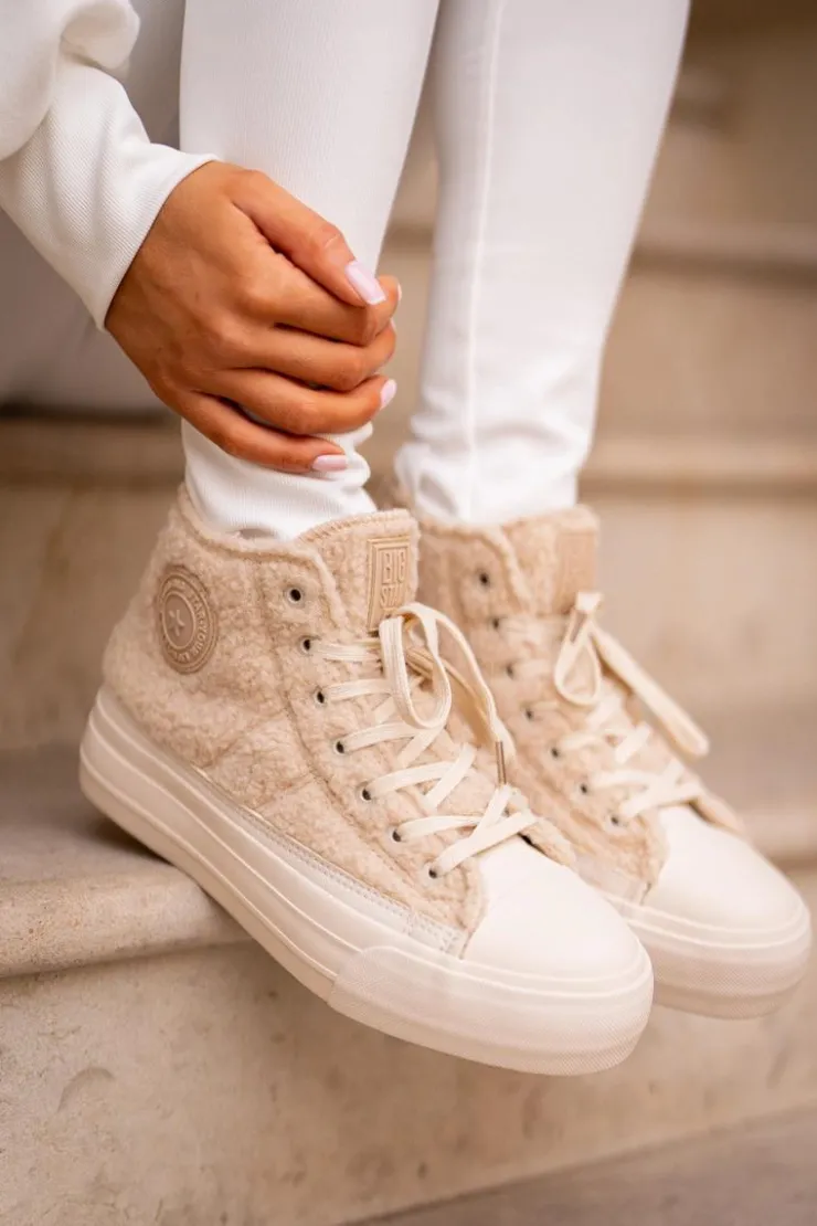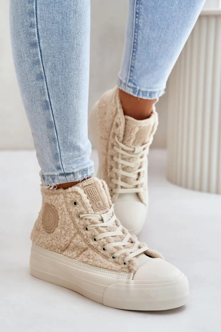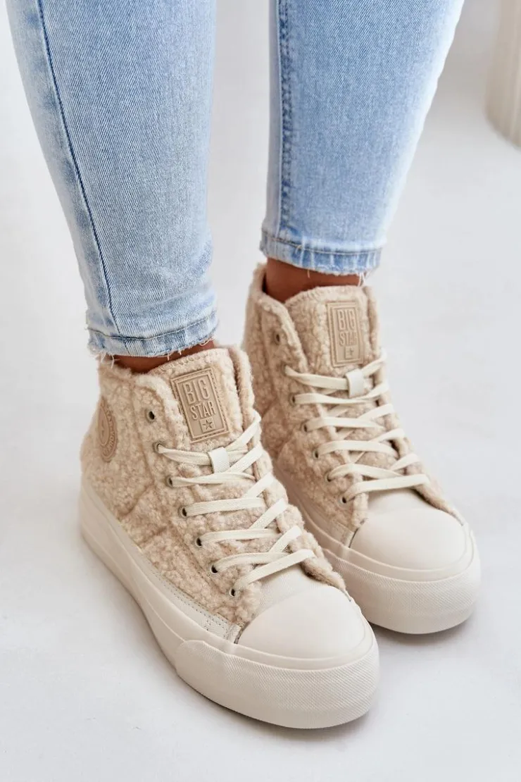 Damskie Big Star Shoes Ocieplane Trampki Damskie Z Futerkiem Typu Baranek Big Star OO274A444 Beżowe