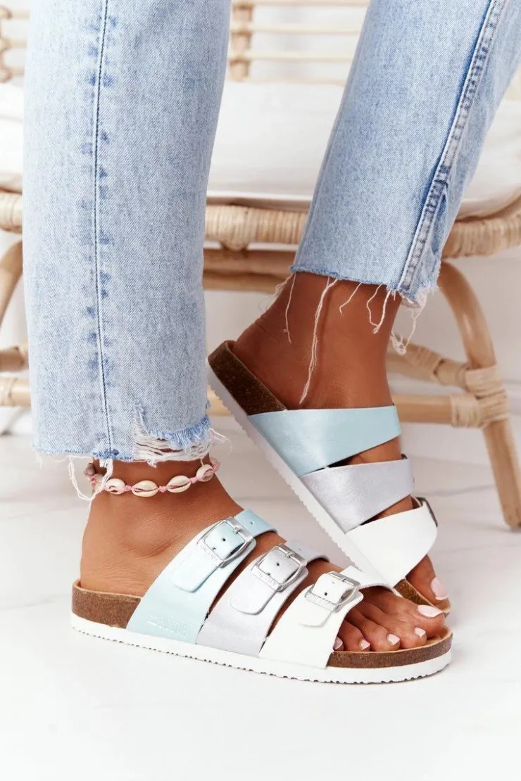 Klapki na korkowej podeszwie od polskiej marki BIG STAR. Buty posiadają profilowaną wkładkę ze skóry naturalnej, która zagwarantuje komfort. Modny fason z klamrami zapewni dopasowanie do stopy. Przy wyborze rozmiaru prosimy sugerować się tabelą rozmiarów.