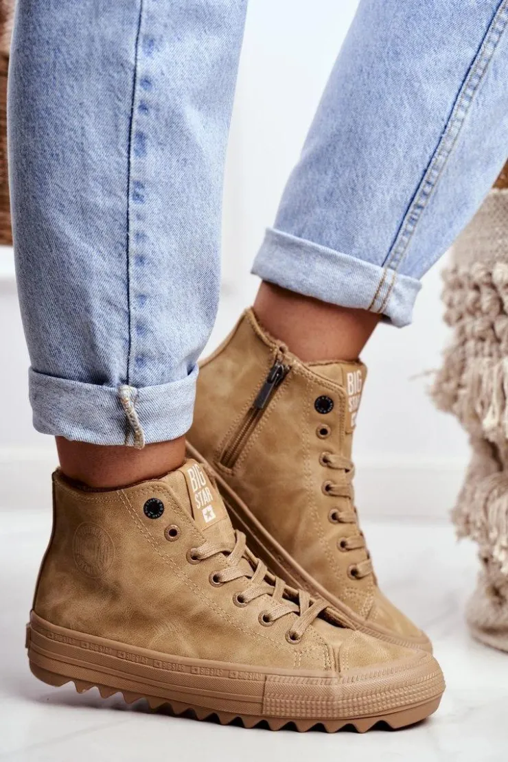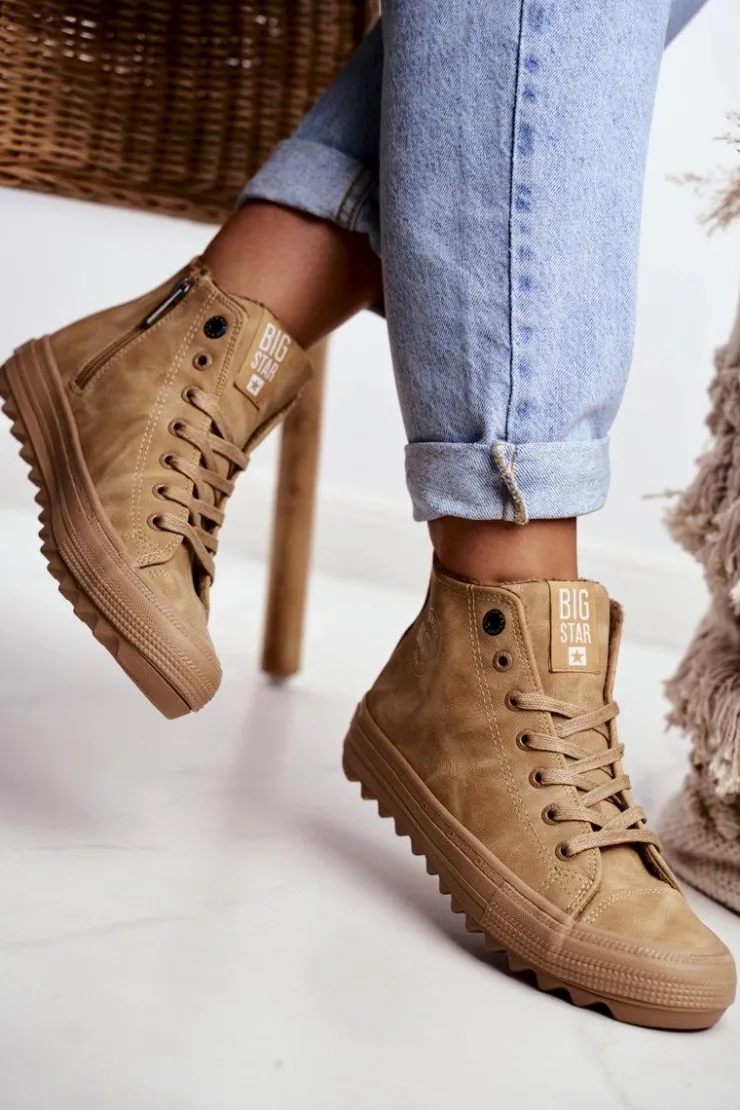 Damskie Big Star Shoes Trampki Damskie Big Star Wysokie Ocieplane Camel GG274072
