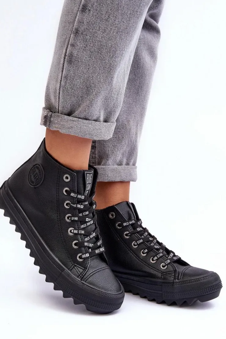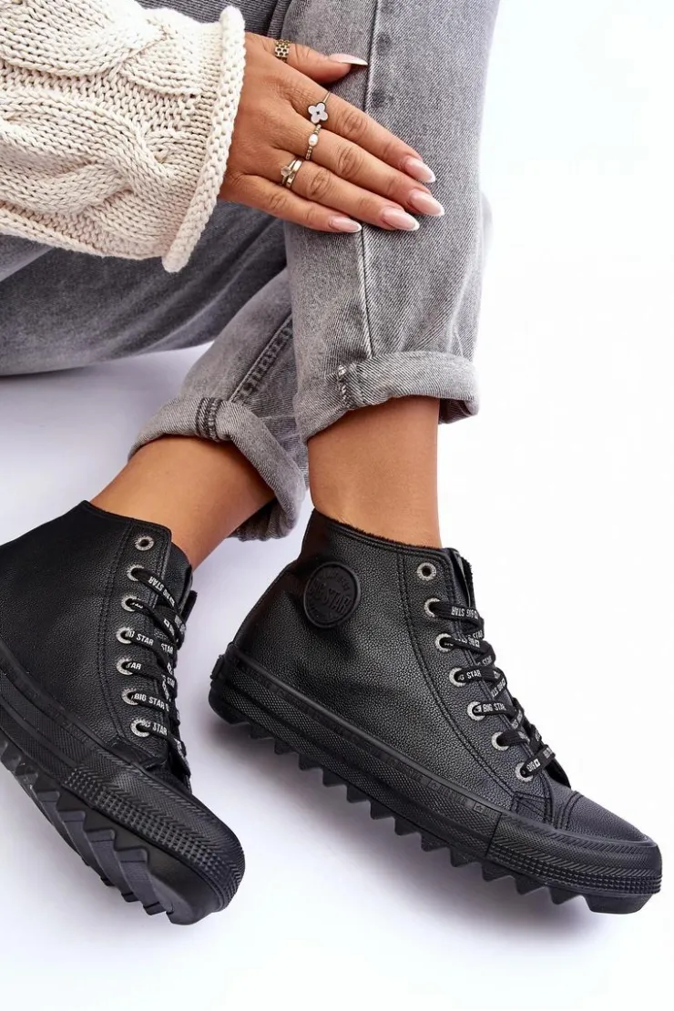 Damskie Big Star Shoes Trampki Damskie Big Star Wysokie Ocieplane Czarne EE274110