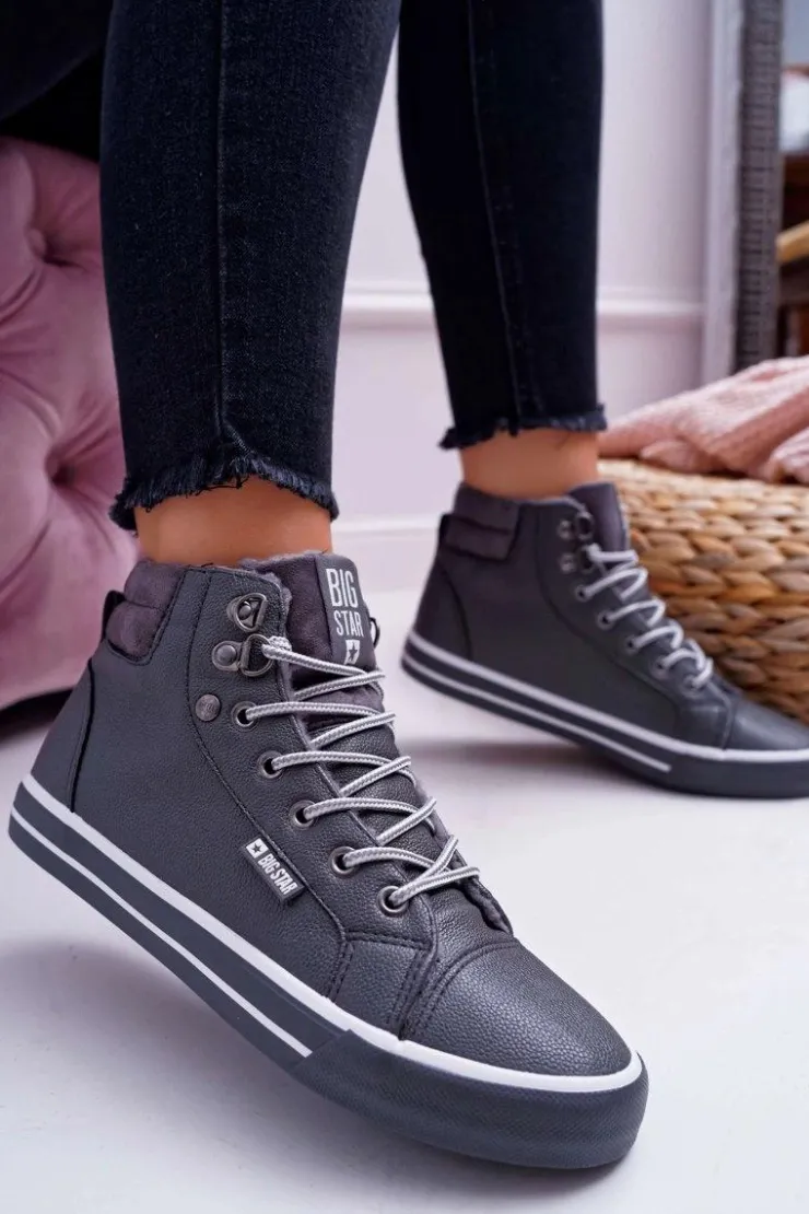 Damskie Big Star Shoes Trampki Damskie Big Star Wysokie Szare Ocieplane EE274413