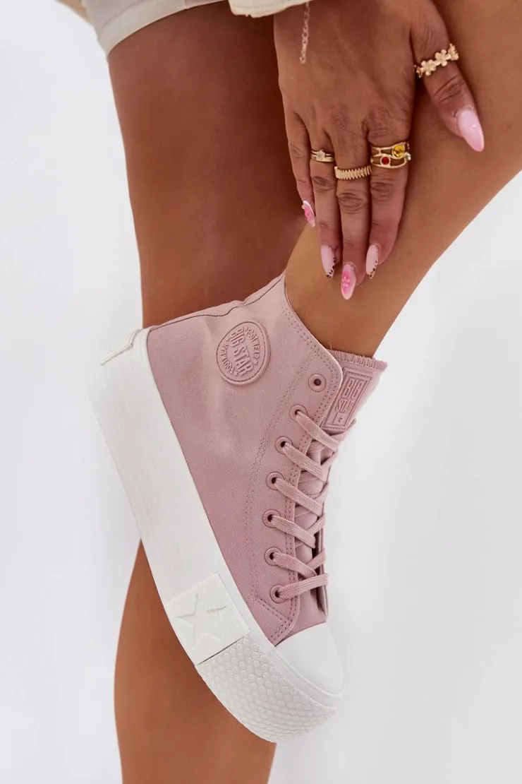 Trampki damskie marki Big Star to połączenie wygody i modnego wyglądu. Wykonane z materiału tekstylnego, osadzone na masywnej platformie, zapewniają stabilność oraz komfort przez cały dzień. Zaokrąglone noski. Cholewka sięgająca za kostkę z logo marki przyciąga wzrok, nadając nowoczesnego charakteru. Stylowy fason sprawia, że te trampki będą doskonałym wyborem do codziennych, casualowych stylizacji. Przy wyborze rozmiaru prosimy sugerować się tabelą rozmiarów.