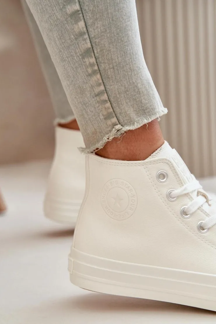 Damskie trampki od marki BIG STAR z cholewką za kostkę. Wykonane z eko skóry. Osadzone na podeszwie z gumowego tworzywa. Noski zaokrąglone. Środek ocieplony kocem obuwniczym. Koniecznie sprawdź całą naszą kolekcję butów marki BIG STAR. Przy wyborze rozmiaru prosimy sugerować się tabelą rozmiarów.