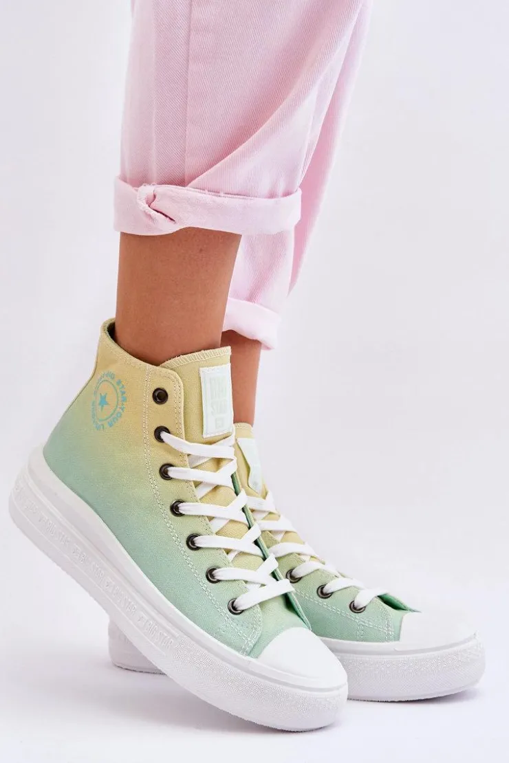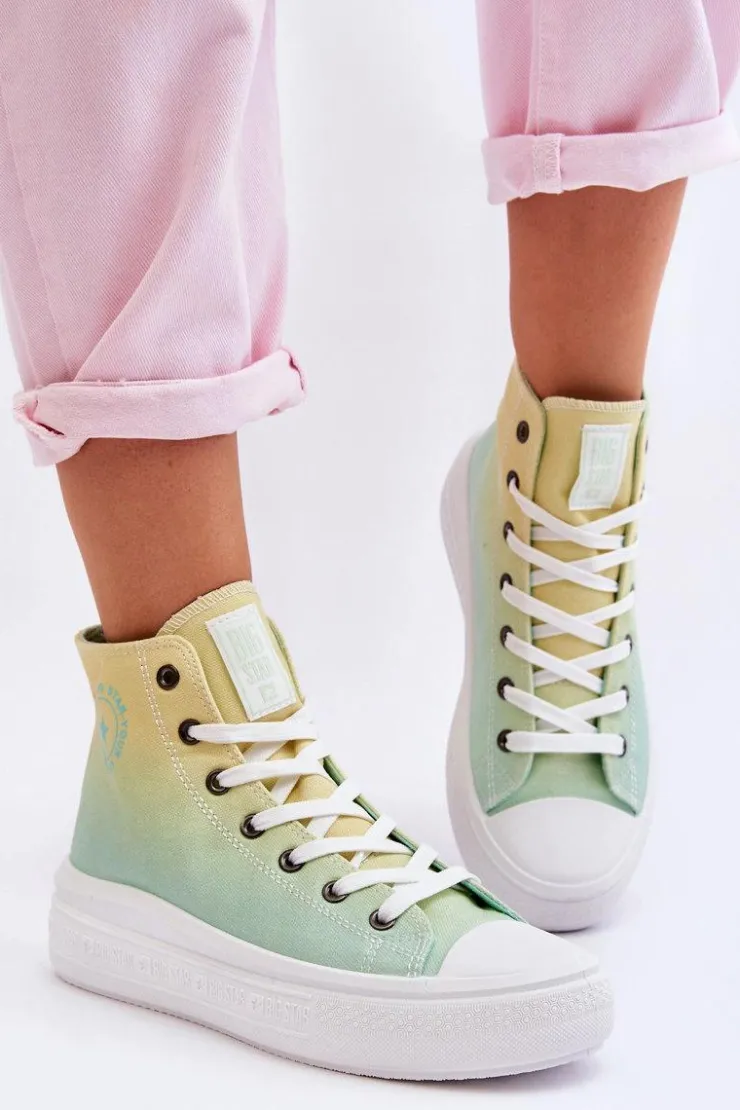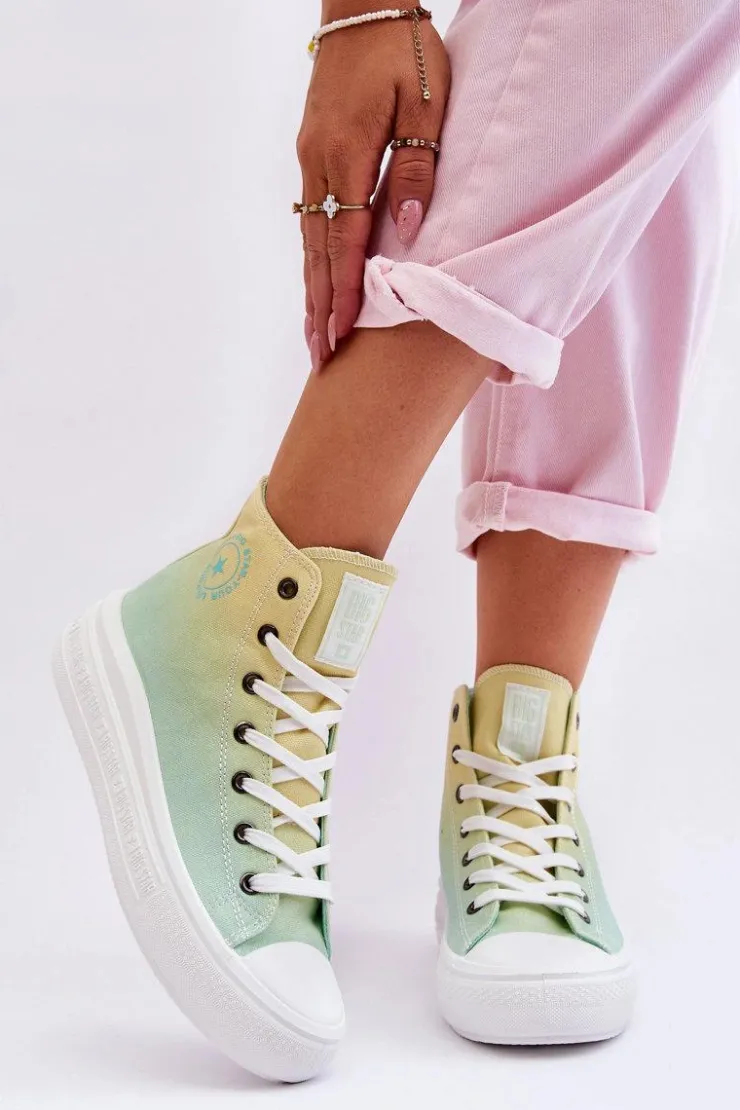 Damskie, wysokie trampki zostały wykonane z materiału tekstylnego. Z boku cholewki posiadają ozdobne logo marki Big Star. Miękka, materiałowa wkładka zapewni wygodę podczas użytkowania. Osadzone na delikatnej platformie z antypoślizgową podeszwą. Model klasycznie sznurowany. Koniecznie sprawdź całą naszą kolekcję butów marki BIG STAR. Przy wyborze rozmiaru prosimy sugerować się tabelą rozmiarów.
