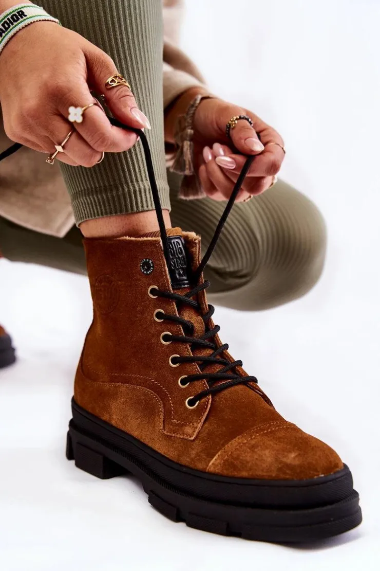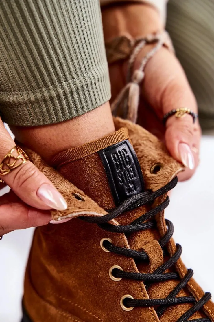Botki — trapery marki Big Star wykonane zostały z naturalnego zamszu. Posiadają z boku tłoczone logo marki Big Star. Środek butów został ocieplony miłym w dotyku, delikatnym futerkiem. Masywna podeszwa oraz płaski obcas sprawiają, że botki są stabilne. Model z klasycznym sznurowaniem z przodu. Koniecznie powinnaś je mieć! Przy wyborze rozmiaru prosimy sugerować się tabelą rozmiarów.
