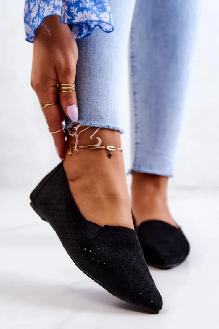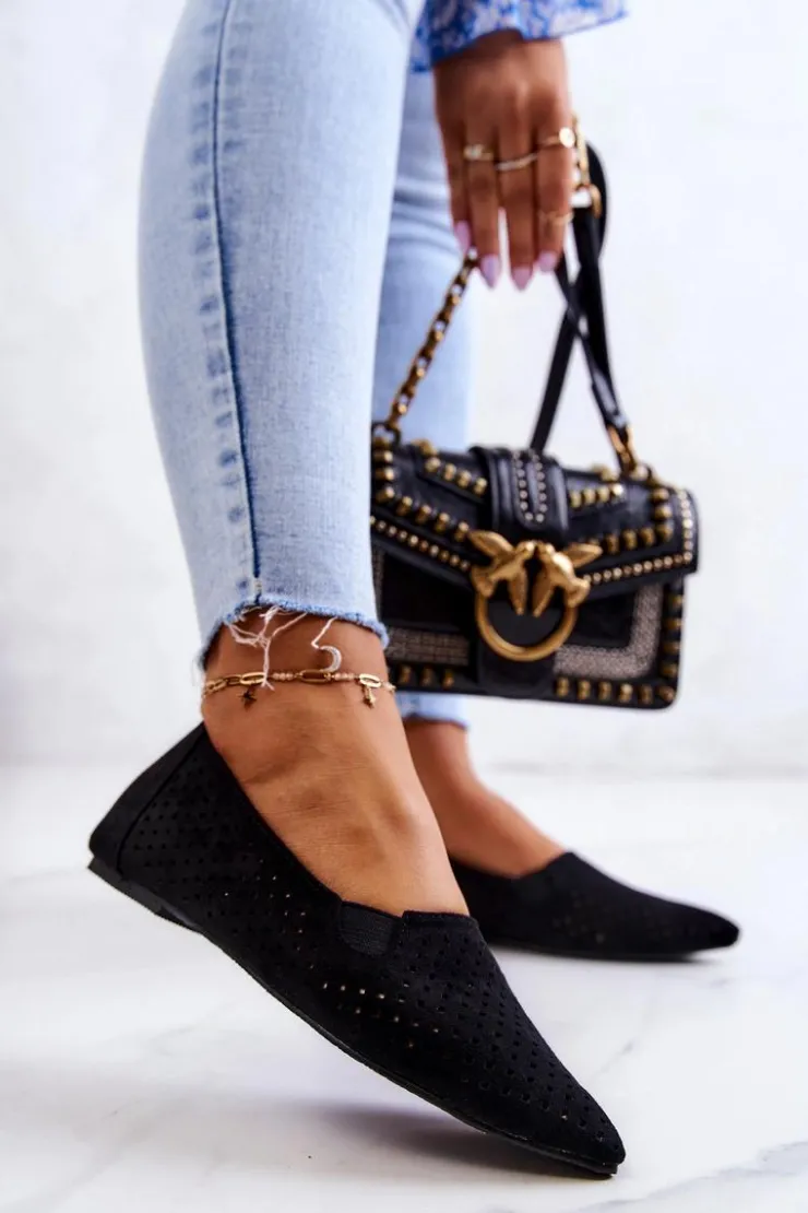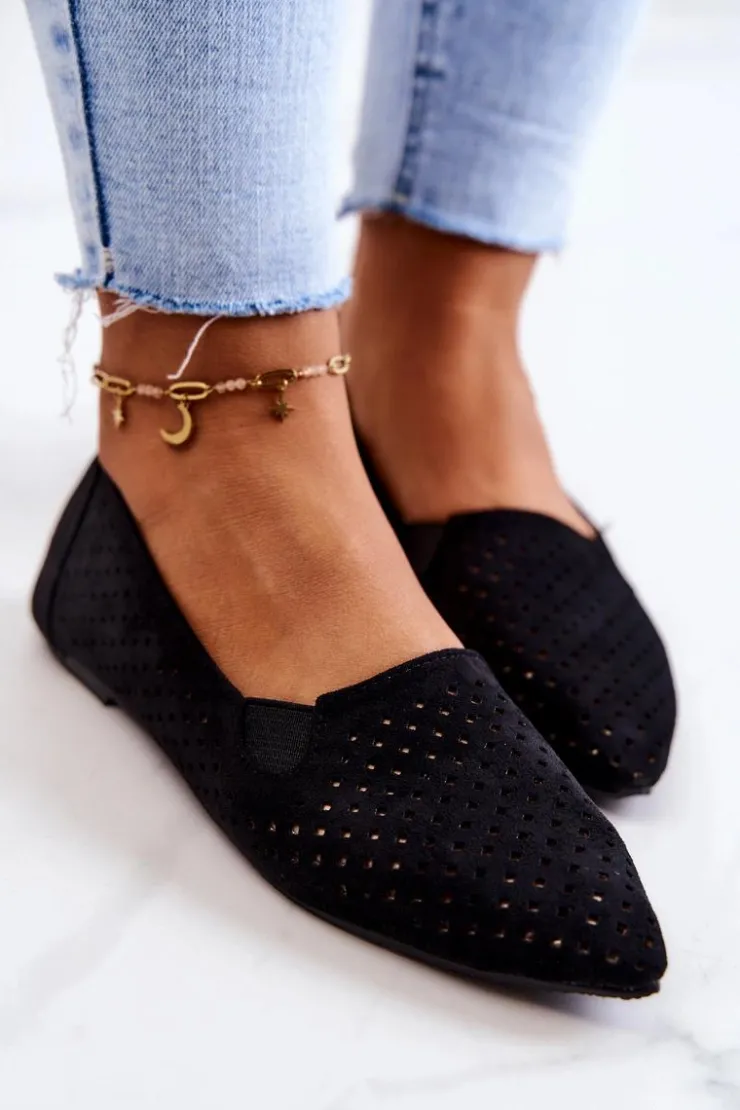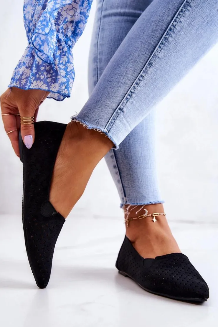 Damskie Boto Ażurowe Damskie Baleriny Wsuwane Czarne Rosario