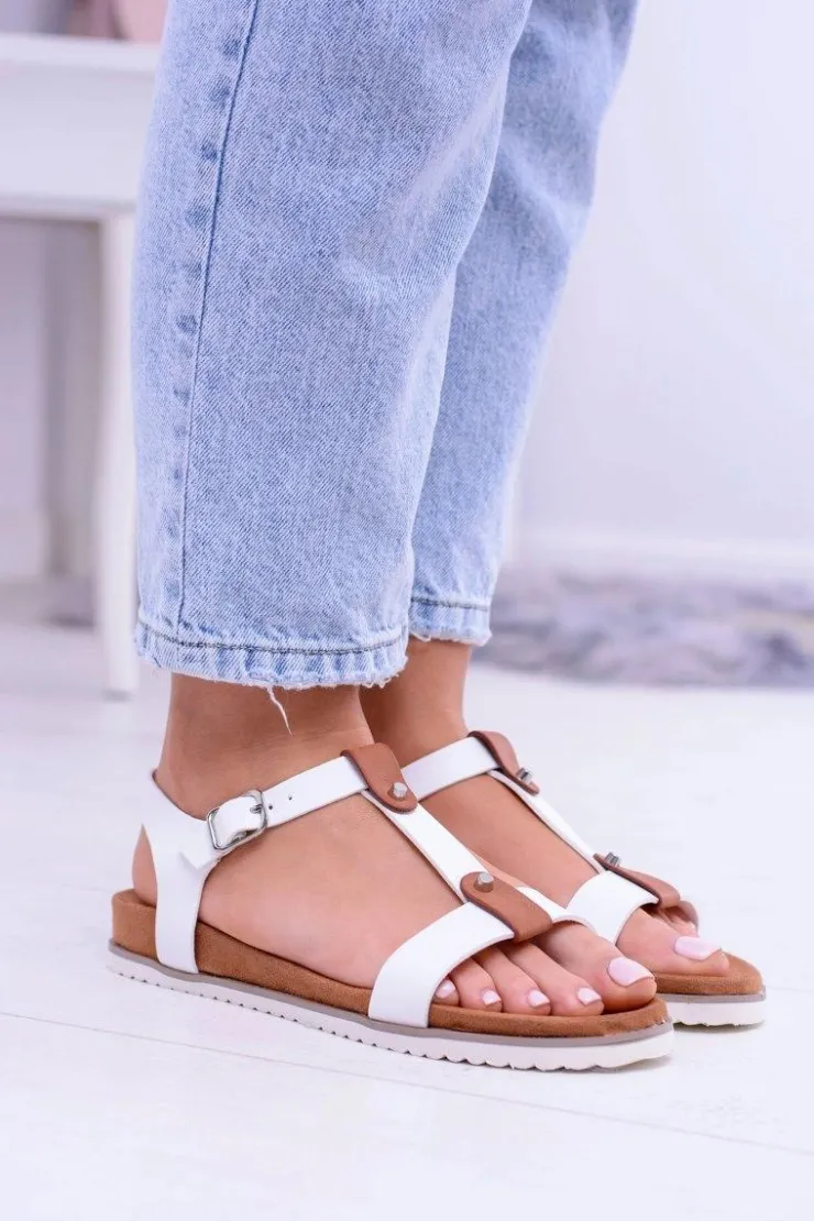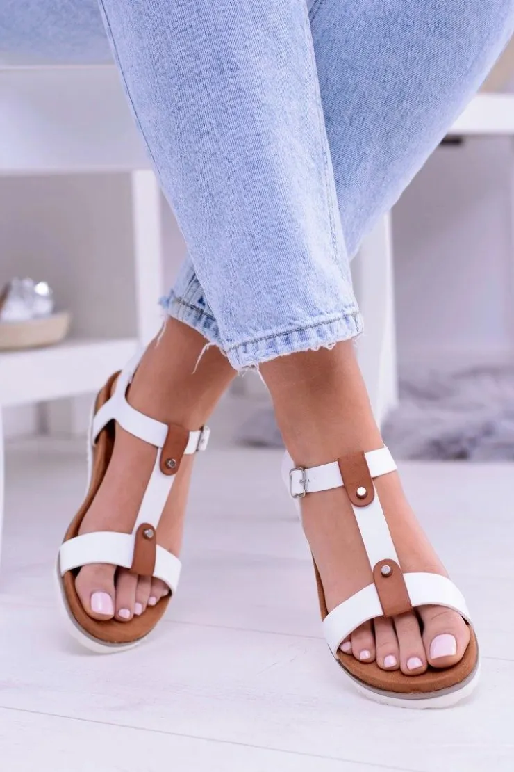 Damskie Boto Białe Wygodne Sandały Damskie Płaskie Dubi
