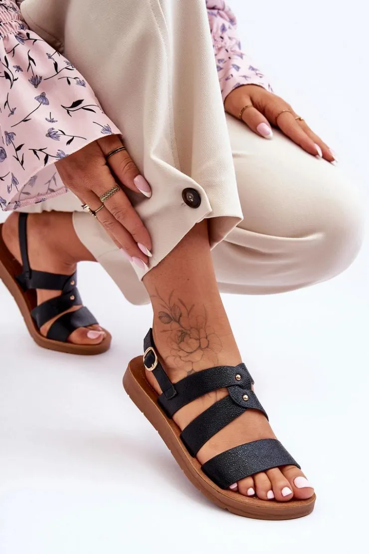 Damskie Boto Błyszczące Sandały Damskie Czarne Catalia