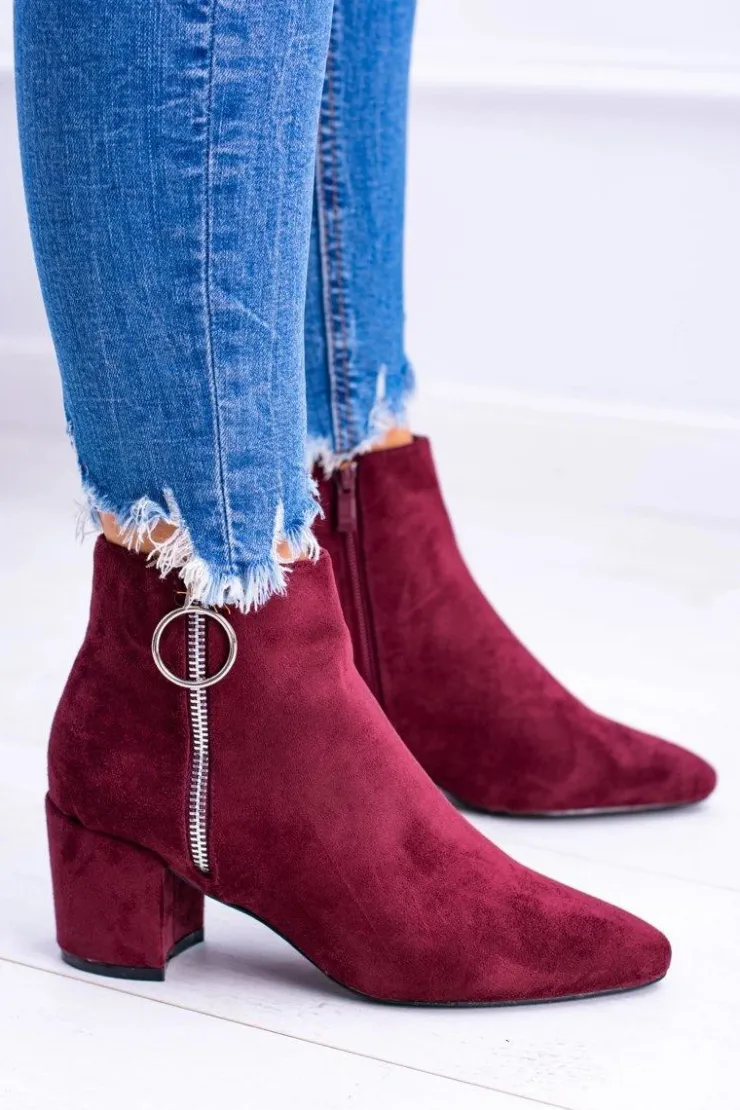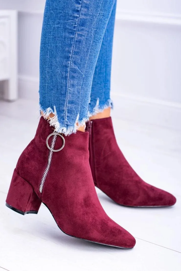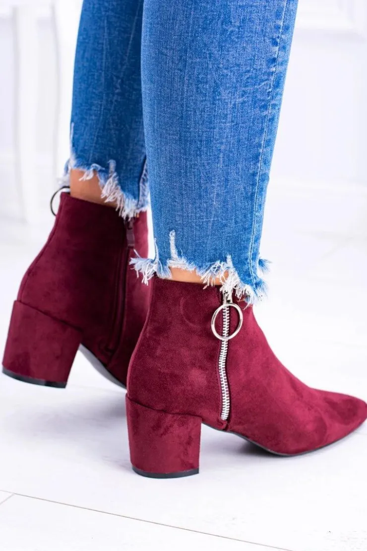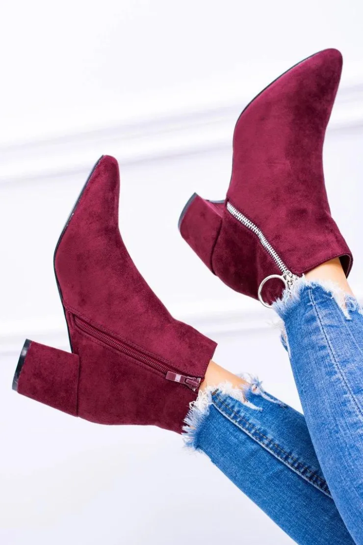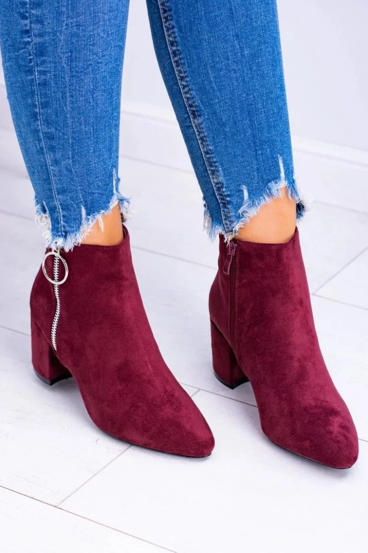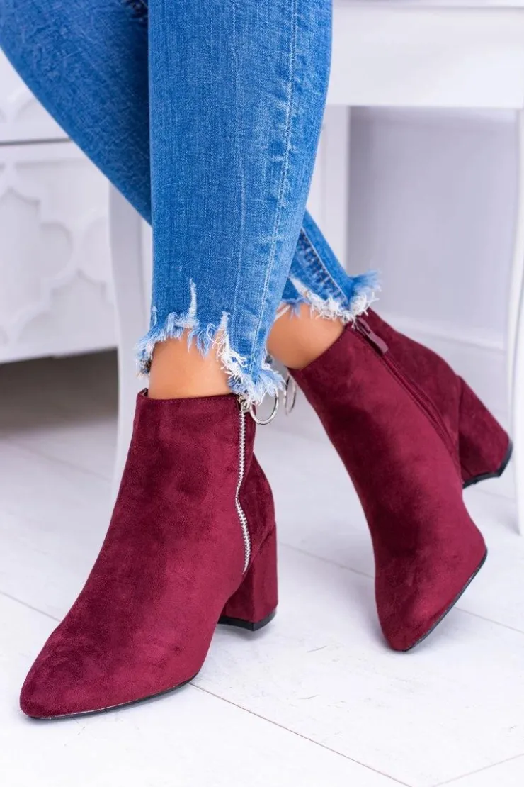 Damskie Boto Bordowe Zamszowe Botki Na Słupku w Szpic Jonnes