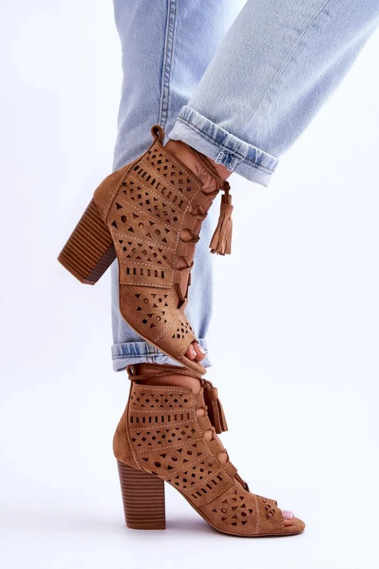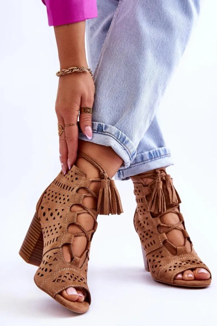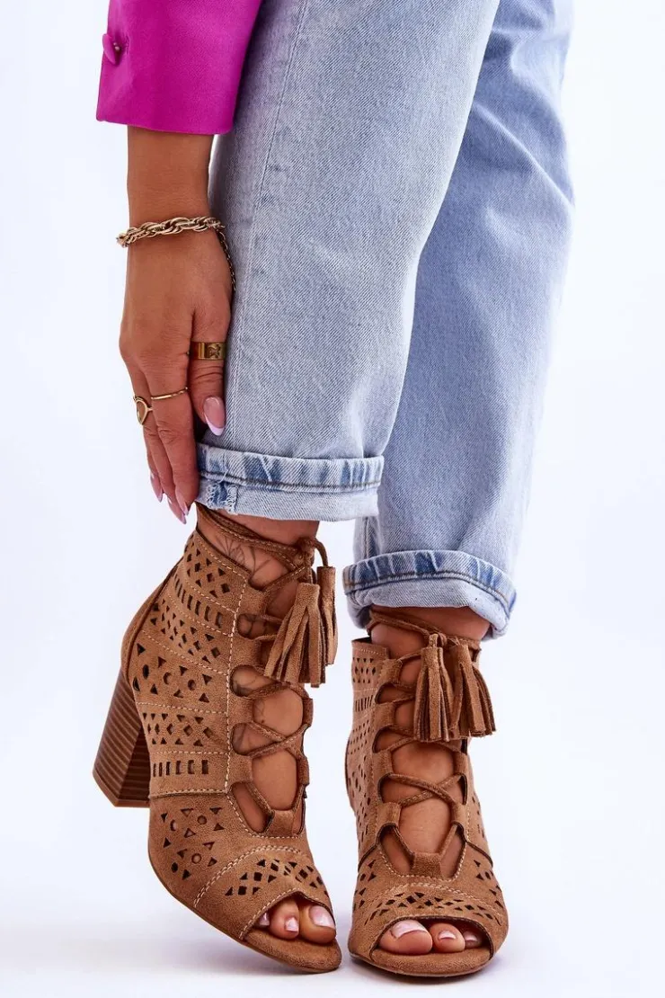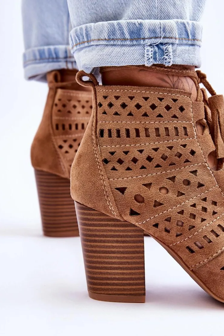 Cudowne, ażurowe botki na obcasie w postaci słupka zostały wykonane z miękkiego eko zamszu. Botki posiadają na całości cholewki zdobienie w postaci ażurowego wzorku. Model klasycznie wiązany. Miękka i wygodna wkładka została wykonana z eko skóry. Ten świetny model sprawdzi się w wielu wiosenno-letnich stylizacjach! Przy wyborze rozmiaru prosimy sugerować się tabelą rozmiarów.