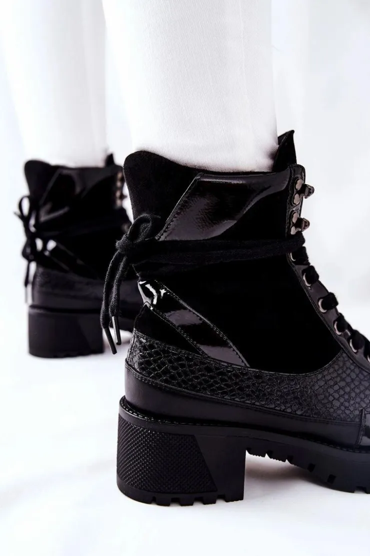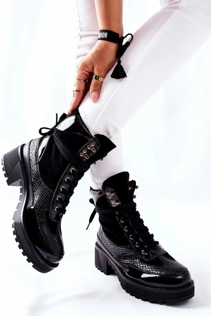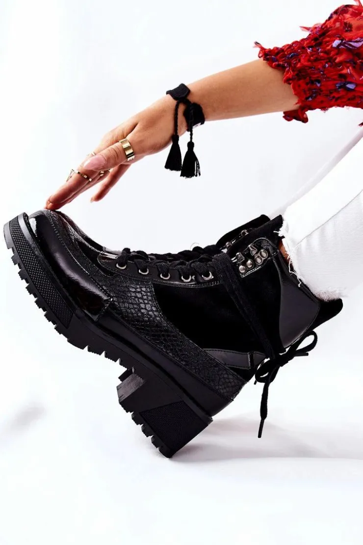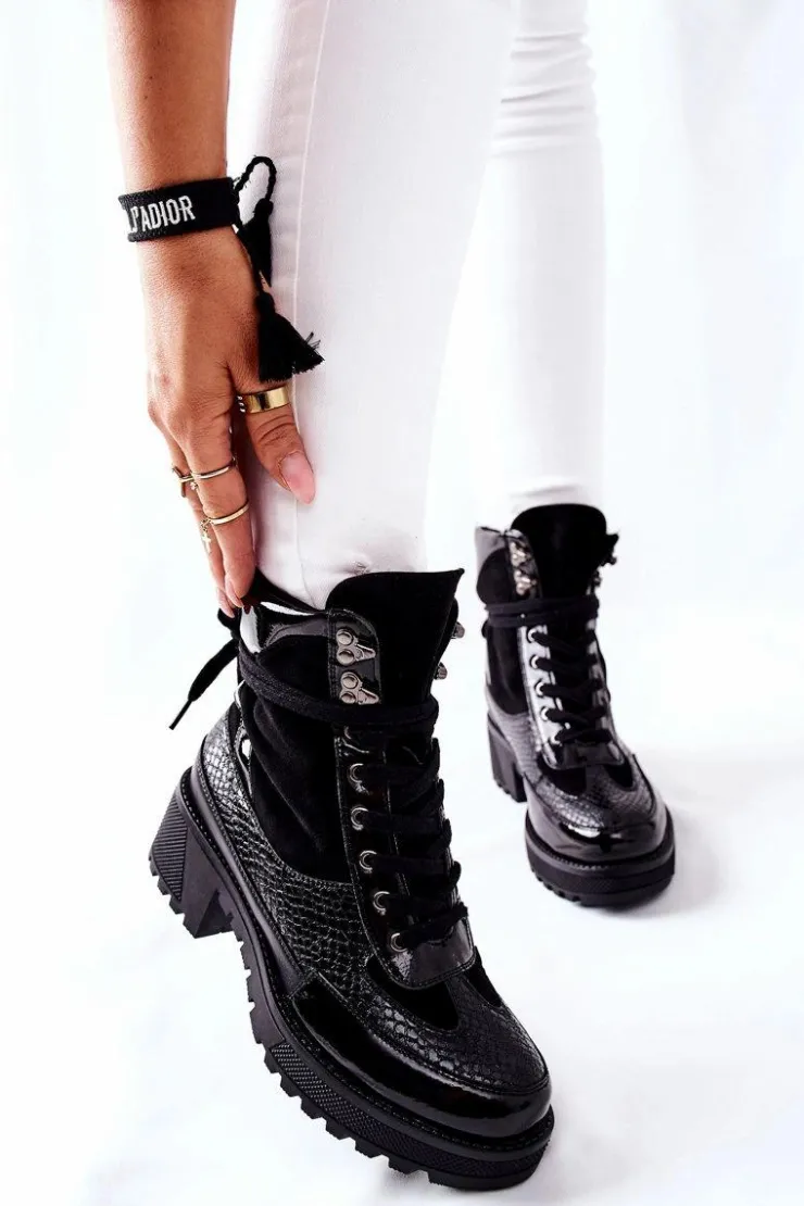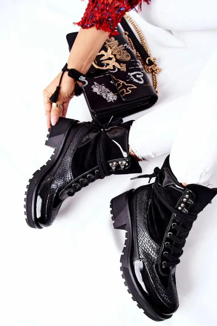 Botki wykonane z połączenia skóry ekologicznej oraz ekozamszu. Masywna platforma i dopasowana cholewka wysmuklą Twoje nogi! Przy wyborze rozmiaru prosimy sugerować się tabelą rozmiarów.