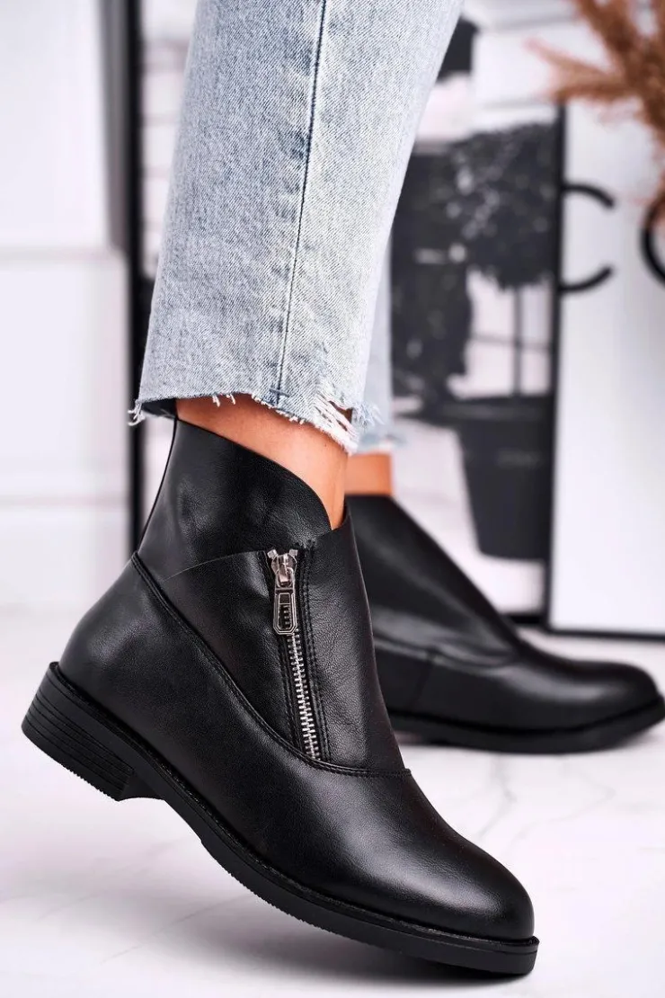 Czarne klasyczne botki. Model, który pasuje do każdej stylizacji dzięki swej klasycznej stylistyce. Wierzch został wykonany ze skóry ekologicznej. Posiadają zamek na cholewce ułatwiający zakładanie! Lekka i wygodna konstrukcja – z pewnością znajdziesz miejsce na kolejną parę butów. Przy wyborze rozmiaru prosimy sugerować się tabelą rozmiarów.
