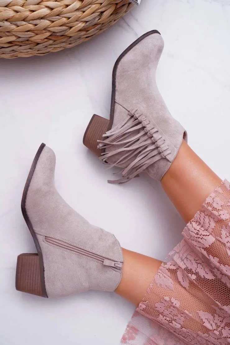 Damskie Boto Botki Damskie Kowbojki Beżowe Agnes