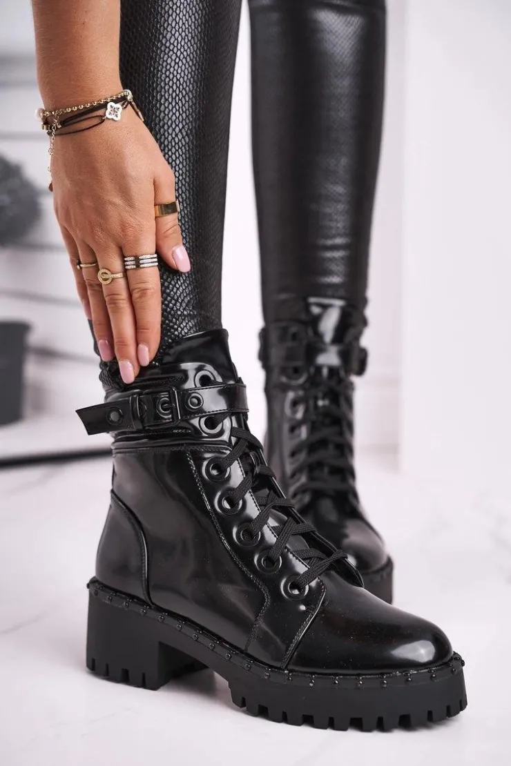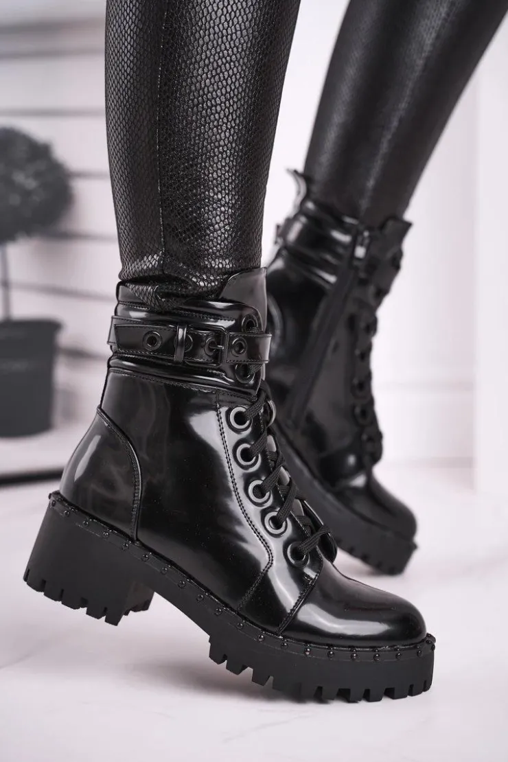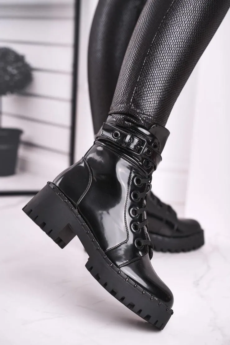 Damskie Boto Botki Damskie Lakierowane Czarne Head Up