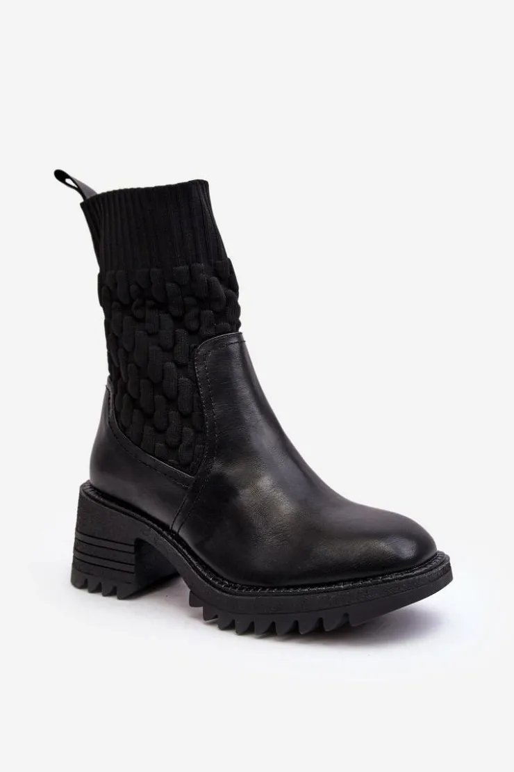 Botki damskie wykonane z połączenia eko skóry i tkaniny. Niski, masywny obcas oraz platforma zapewnią stabilność na każdym kroku. Noski w kwadrat. Usztywniony zapiętek. Środek ocieplony kocem obuwniczym wyłącznie na wysokości stopy. Przy wyborze rozmiaru prosimy sugerować się tabelą rozmiarów.
