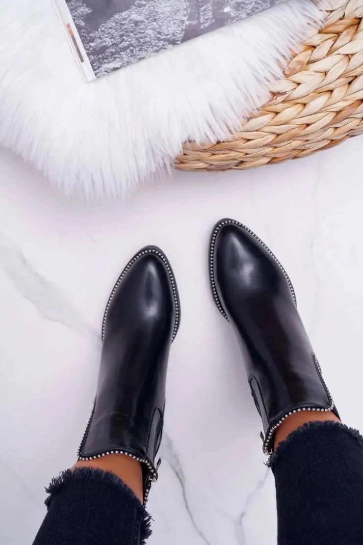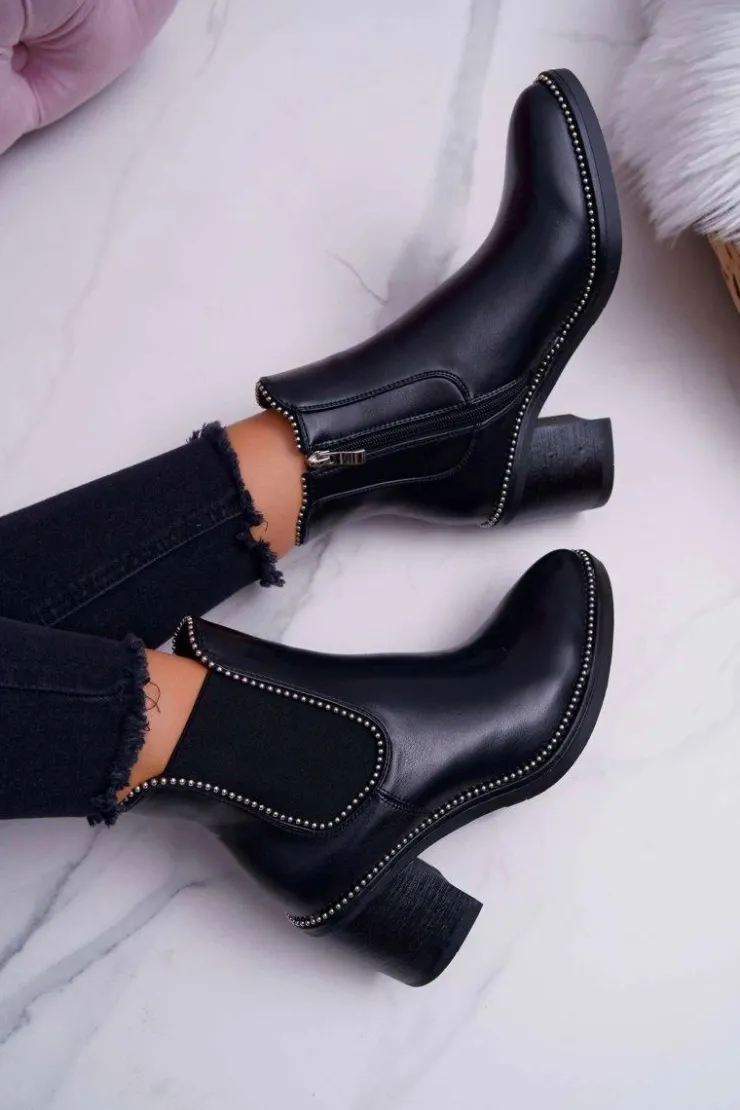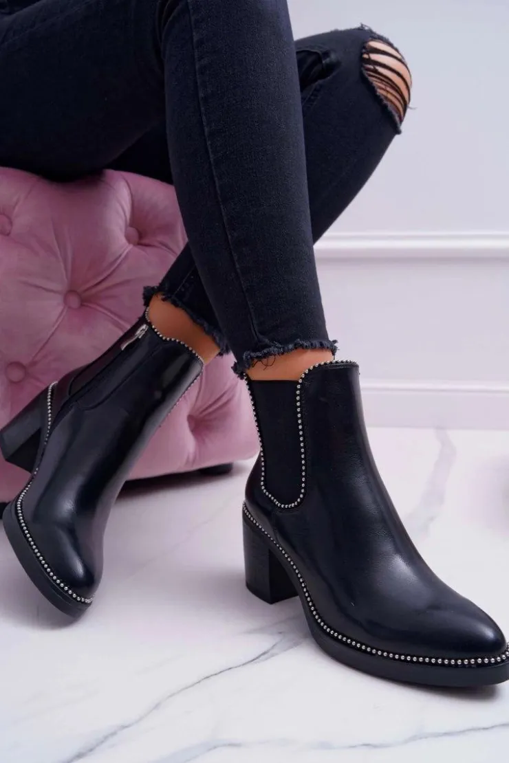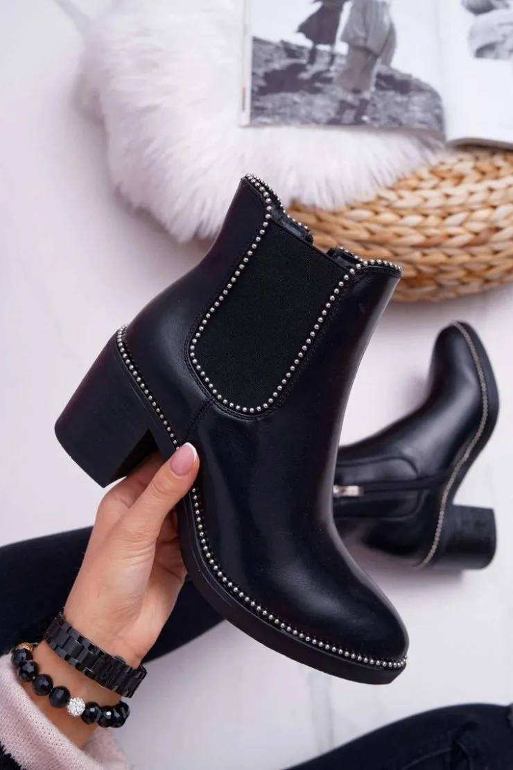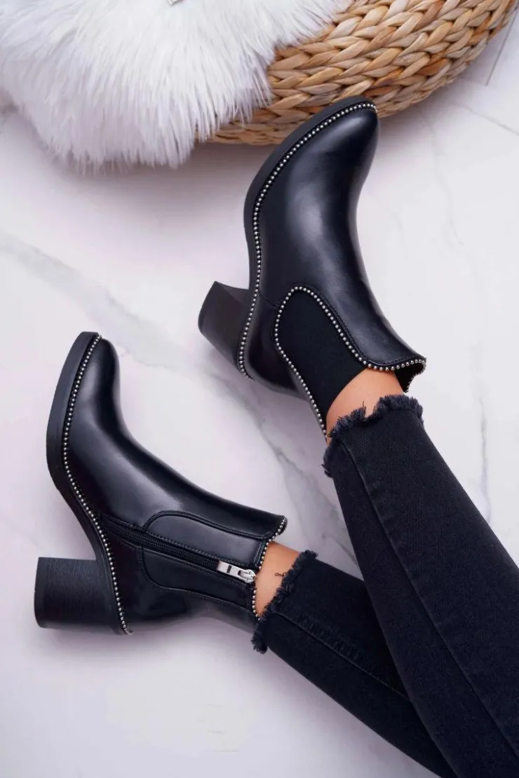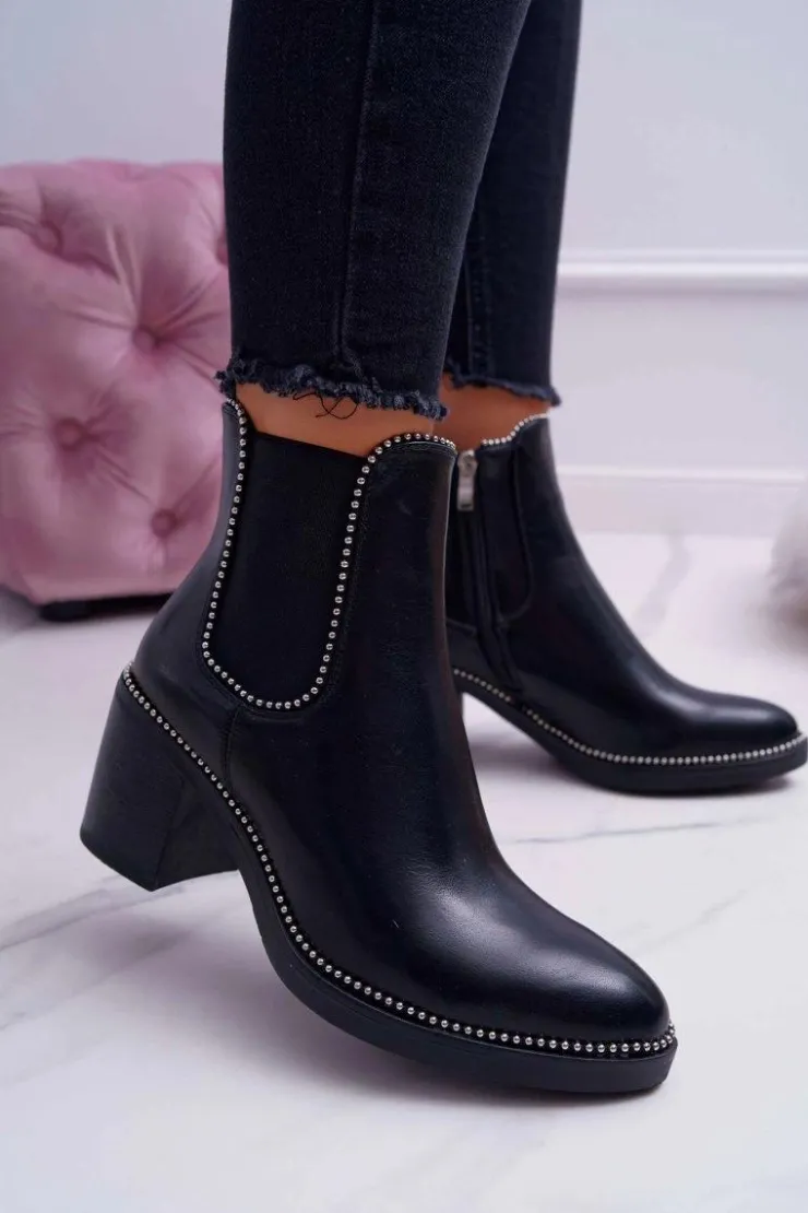 Damskie Boto Botki Damskie Na Obcasie Z Dżetami Czarne Rhythmic