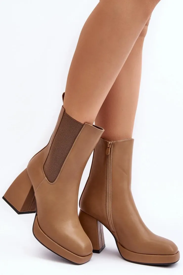 Damskie botki wykonane z eko skóry. Osadzone na masywnym obcasie i platformie. Cholewka za kostkę zapinana na suwak. Środek ocieplony kocem obuwniczym. Noski w kwadrat. Koniecznie powinnaś mieć ten model w swojej szafie! Przy wyborze rozmiaru prosimy sugerować się tabelą rozmiarów.