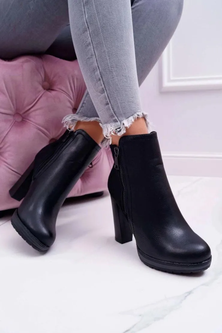 Damskie Boto Botki Damskie Na Słupku Czarne Malma