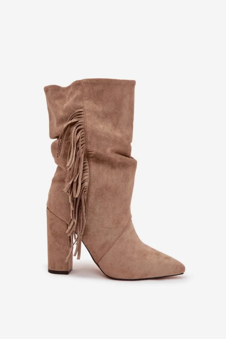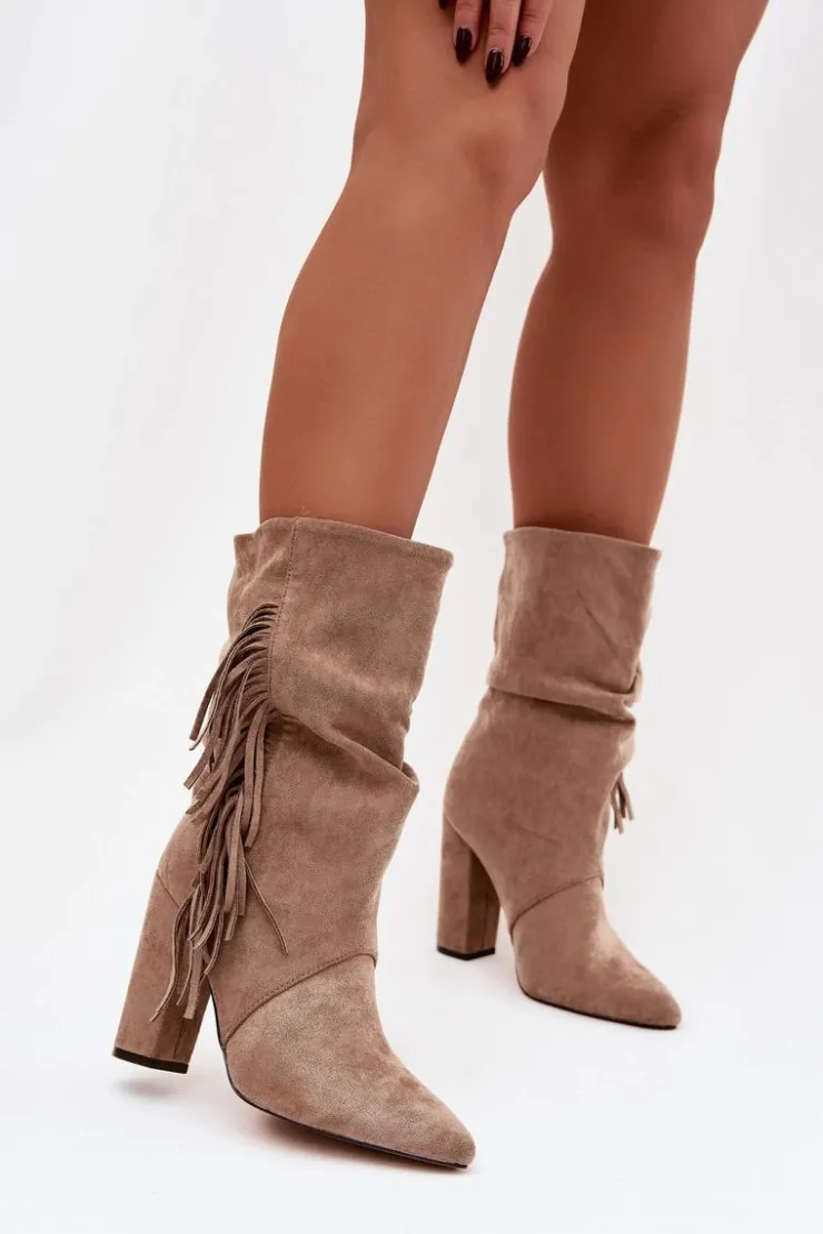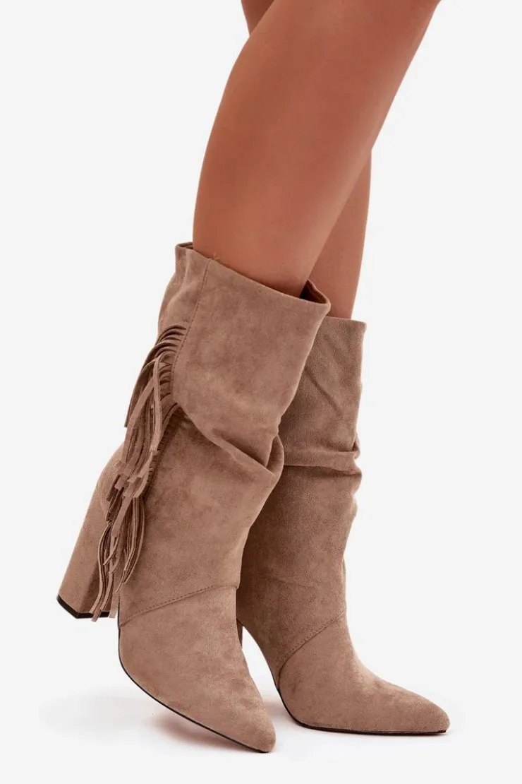 FAQ — Botki damskie na słupku z frędzlami i marszczeniem ocieplane czekoladowe Darlina