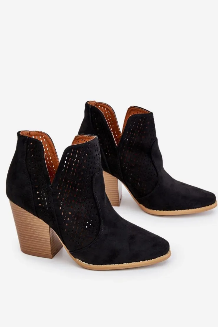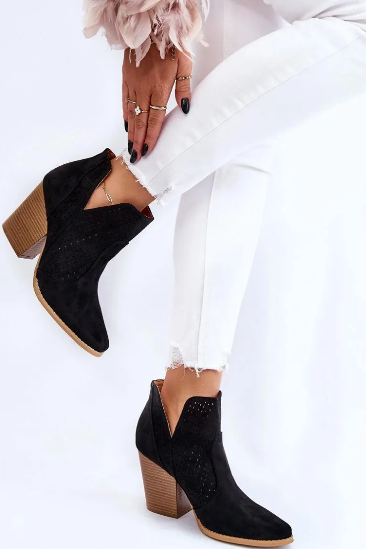 Damskie Boto Botki Damskie Na Słupku Zamszowe Ażurowe Czarne Shades