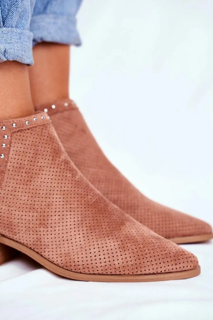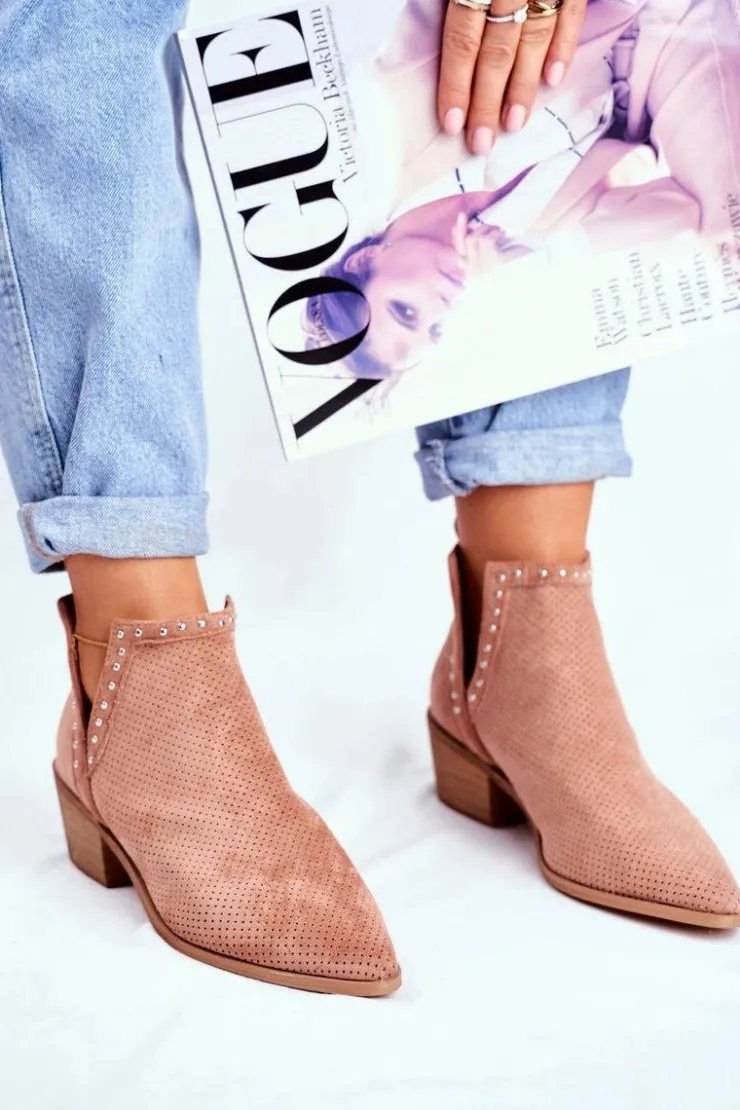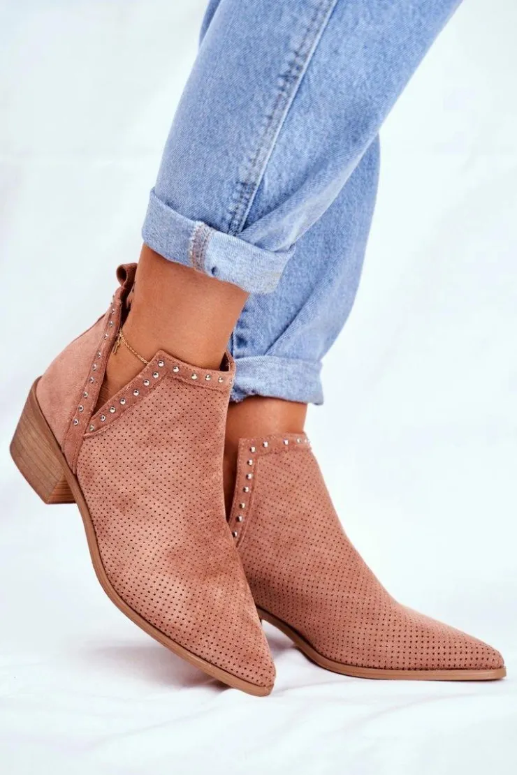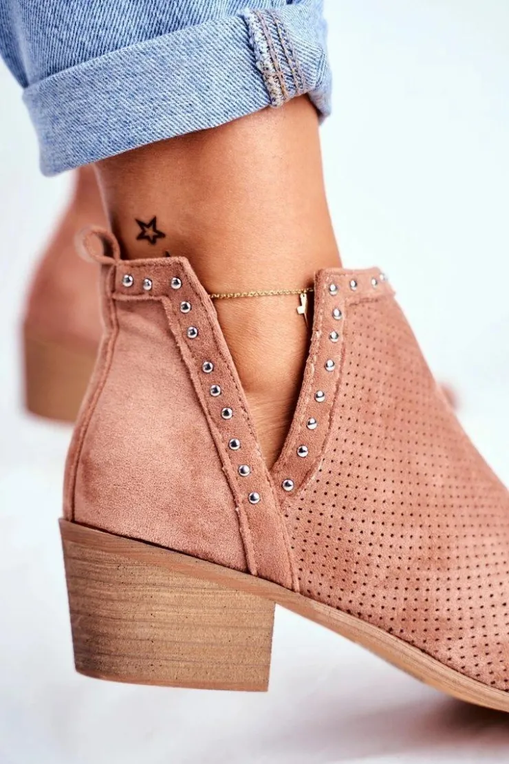 Damskie Boto Botki Damskie Na Słupku Zamszowe Ażurowe Różowe Margate