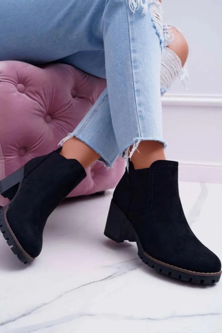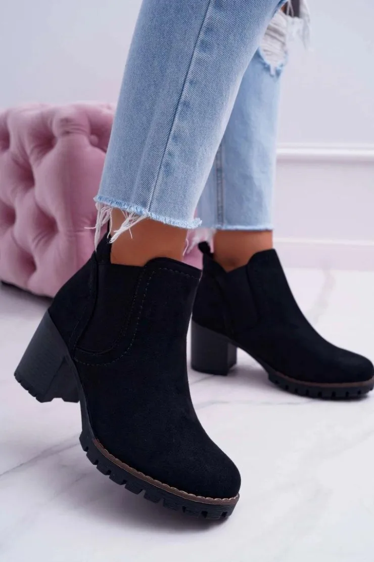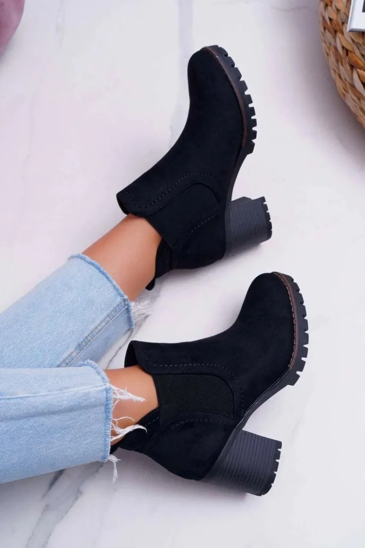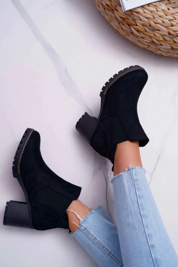 Damskie Boto Botki Damskie na Słupku Zamszowe Czarne Shanto