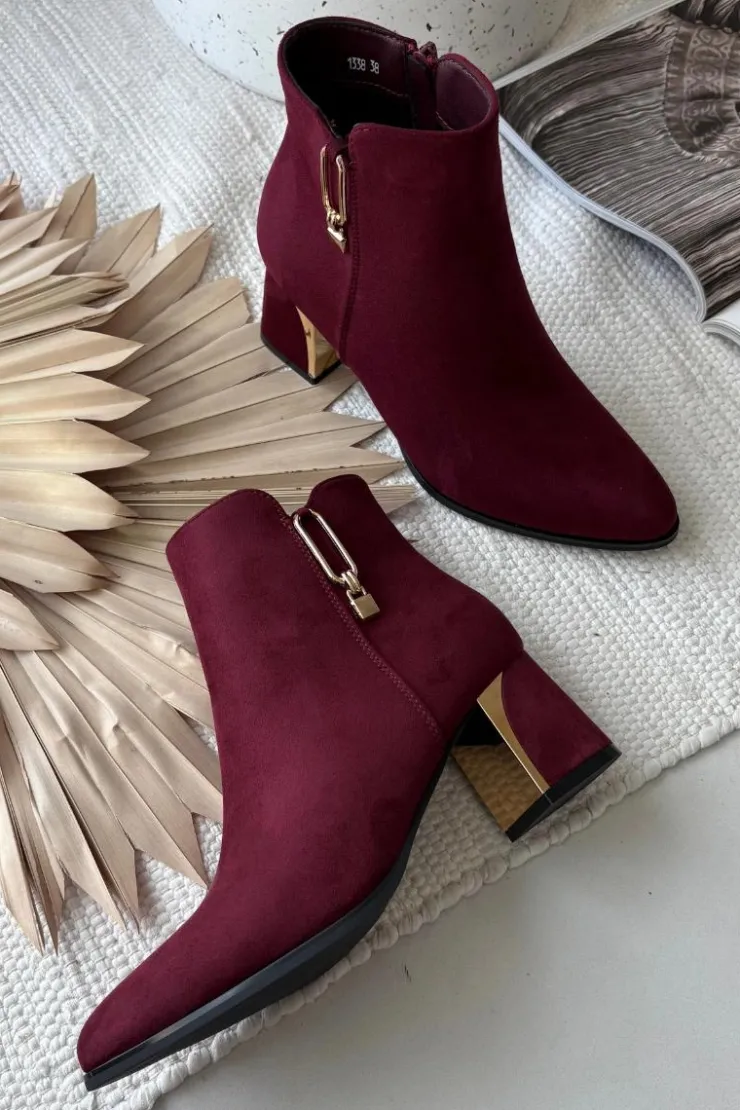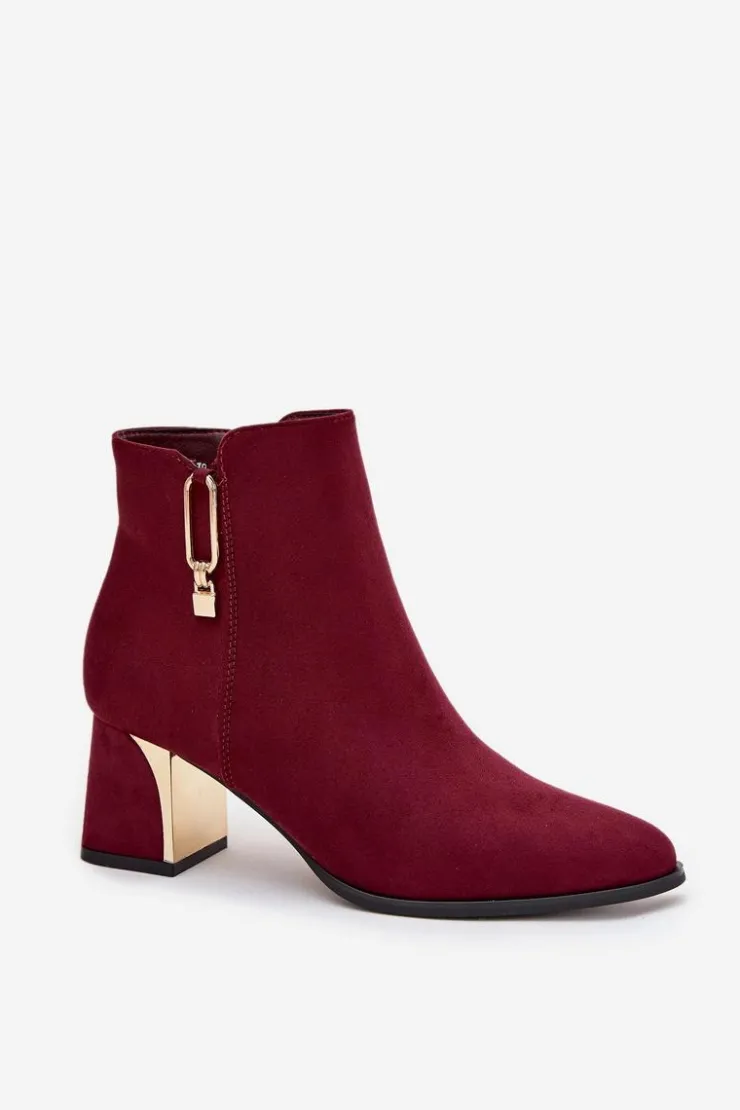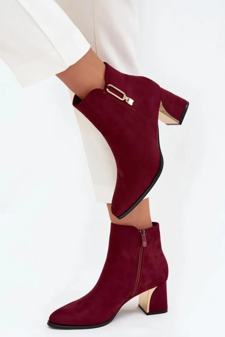 Botki damskie wykonane z eko zamszu to elegancka propozycja dla kobiet ceniących modny wygląd i wygodę. Osadzone na stabilnym obcasie typu słupek pięknie wysmuklają sylwetkę, a noski w kształcie migdała dodają subtelnej elegancji. Model zapinany na zamek ułatwia zakładanie i zdejmowanie. Stylowego charakteru nadają złote detale umieszczone na obcasie i cholewce, które przyciągają wzrok i podkreślają nowoczesny design. To buty idealne zarówno na co dzień, jak i na bardziej eleganckie okazje. Przy wyborze rozmiaru prosimy sugerować się tabelą rozmiarów.