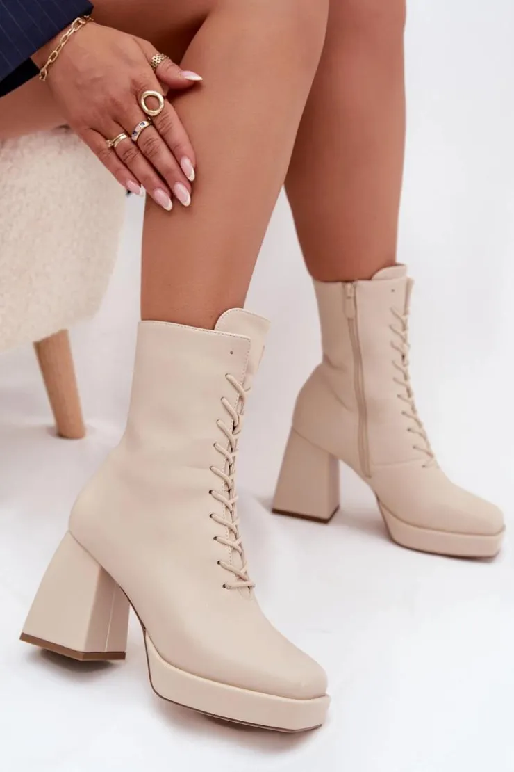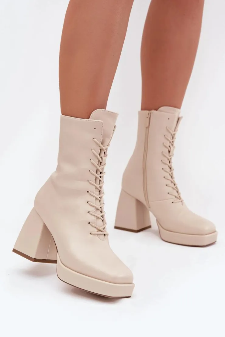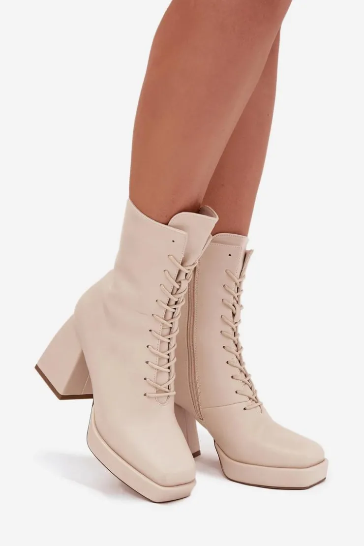 Botki damskie wykonane z eko skóry to stylowa propozycja na chłodniejsze dni. Osadzone na stabilnym obcasie typu słupek gwarantują wygodę, a ocieplane wnętrze zapewnia komfort i ciepło. Model sznurowany i zapinany na zamek łączy modny wygląd z praktycznym rozwiązaniem, ułatwiając zakładanie i dopasowanie do stopy. Kwadratowe noski dodają nowoczesnego charakteru i wyróżniają ten fason na tle klasycznych modeli. Przy wyborze rozmiaru prosimy sugerować się tabelą rozmiarów.