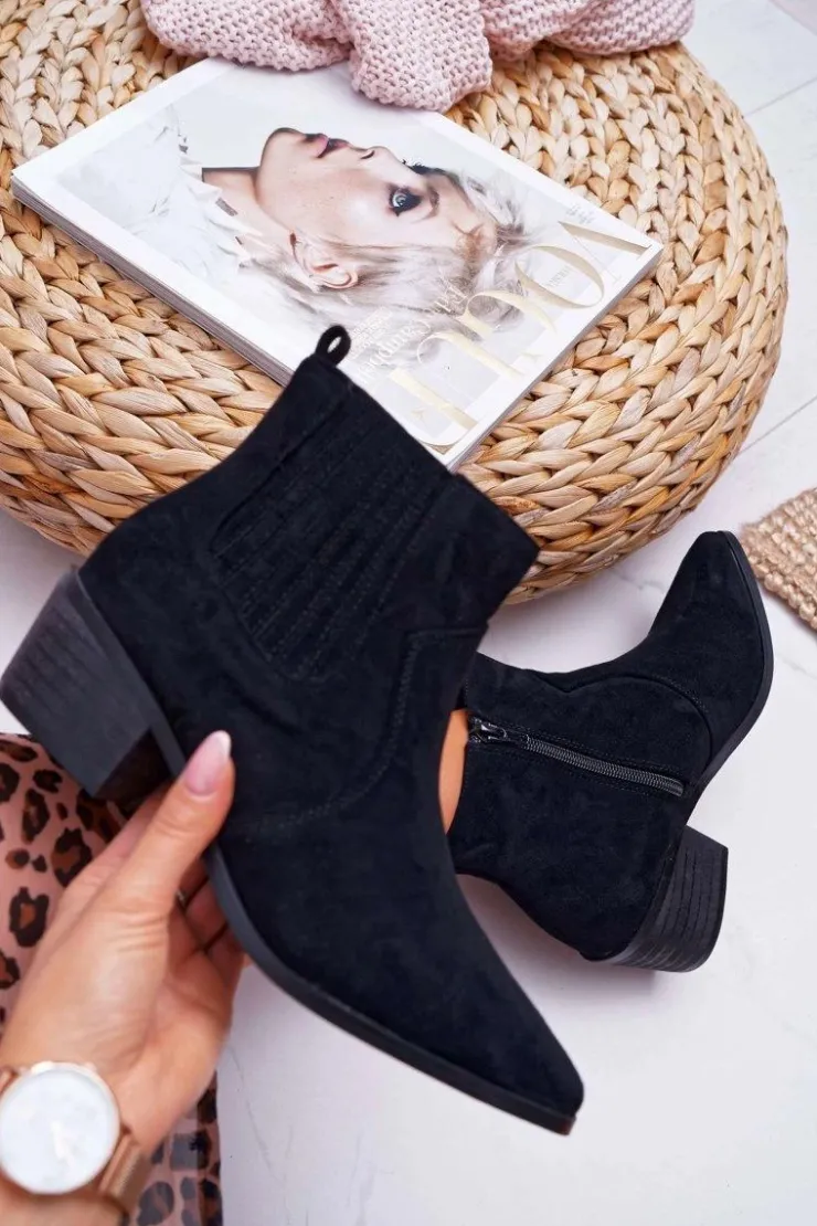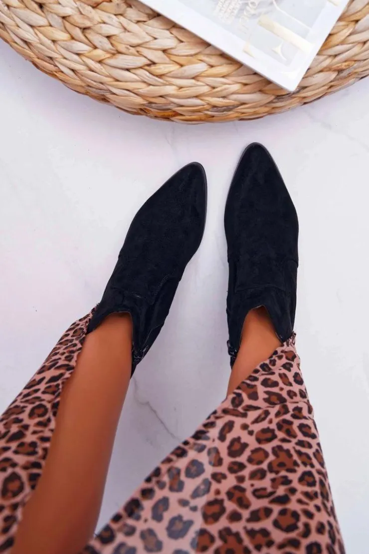 Damskie Boto Botki Damskie Płaski Obcas Czarne Umberco