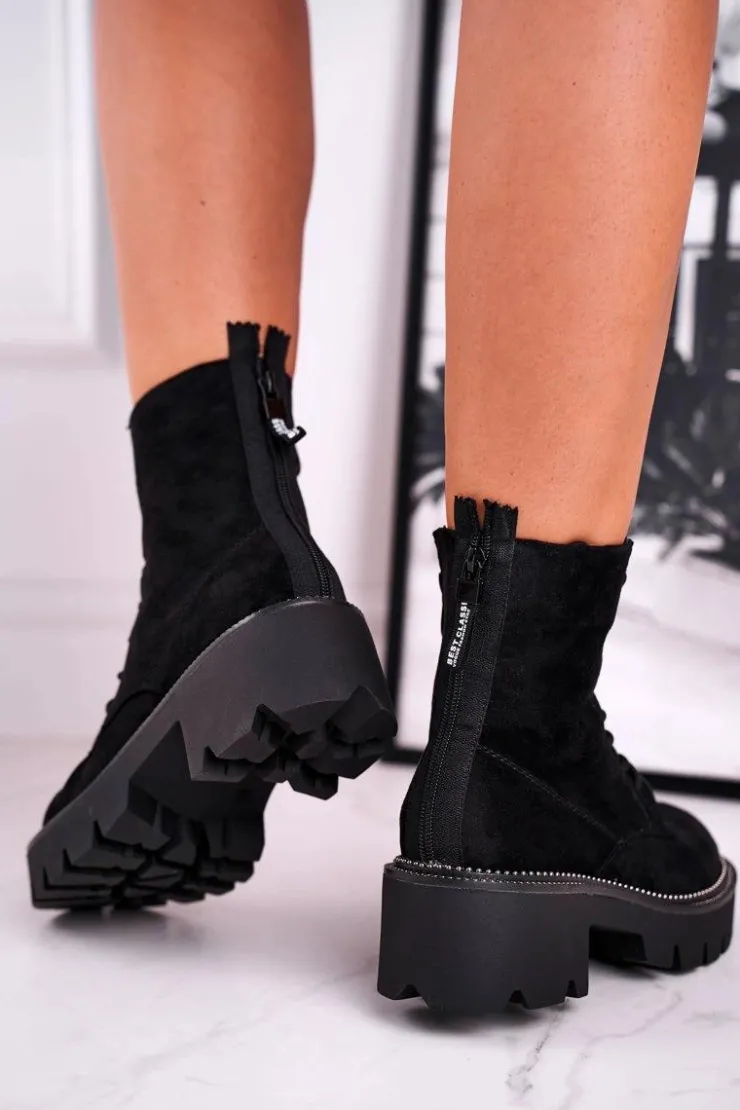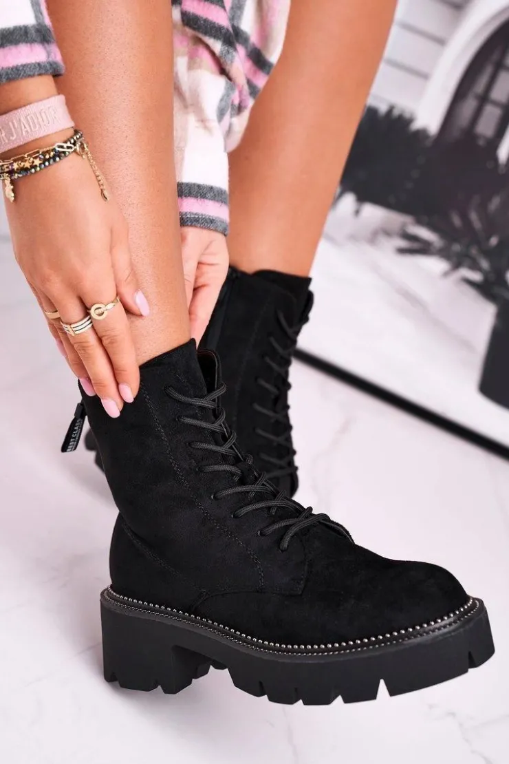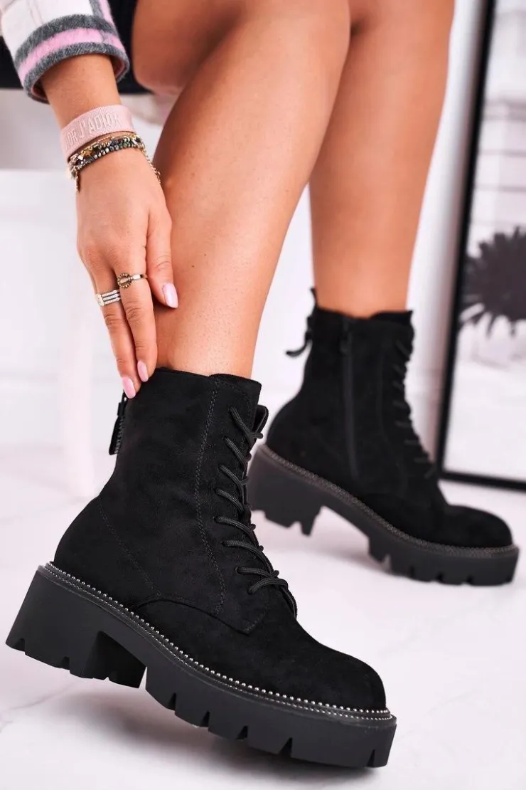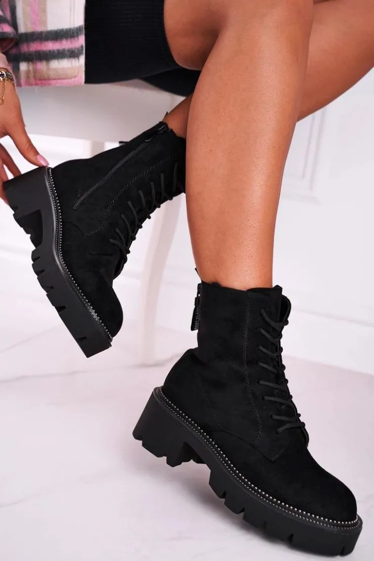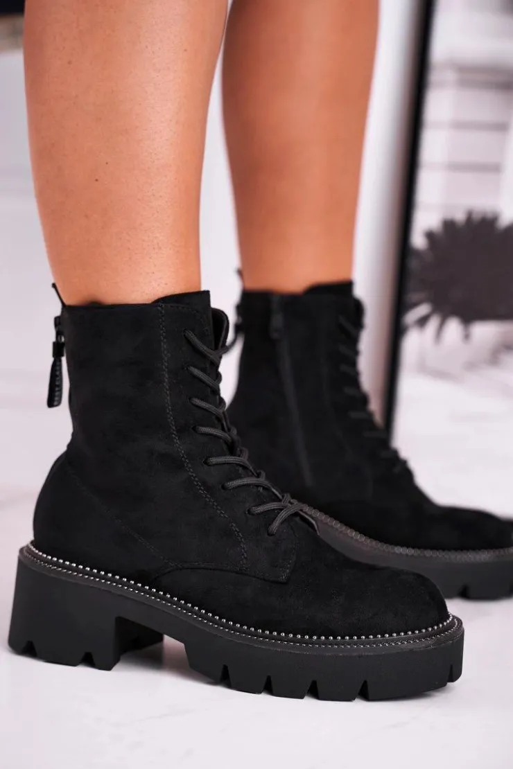 Damskie Boto Botki Damskie Trapery Czarne Zamszowe Malawi