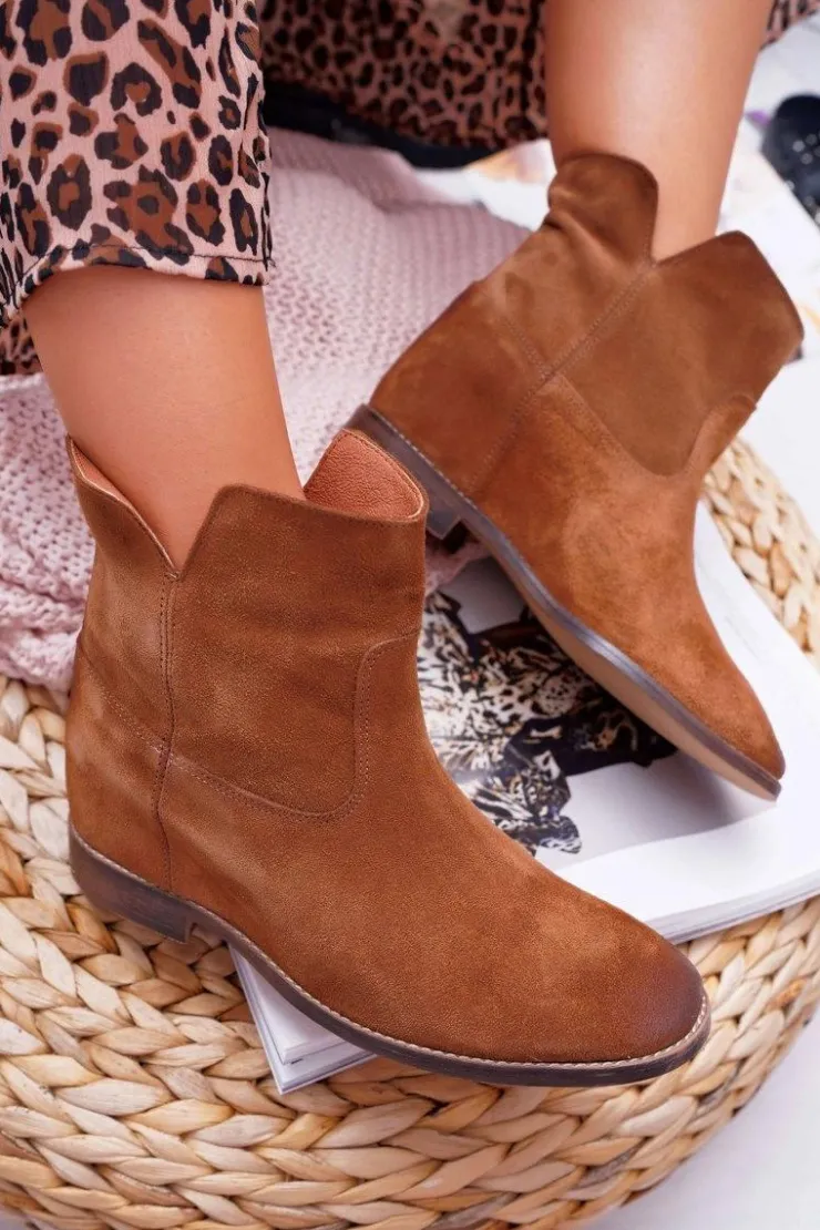 Damskie Boto Botki Damskie Ukryty Koturn Płaski Obcas Brązowe Nicole 2419