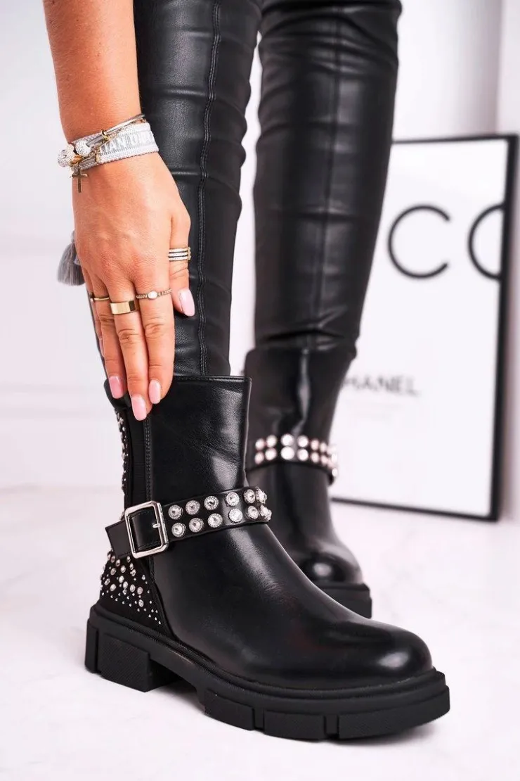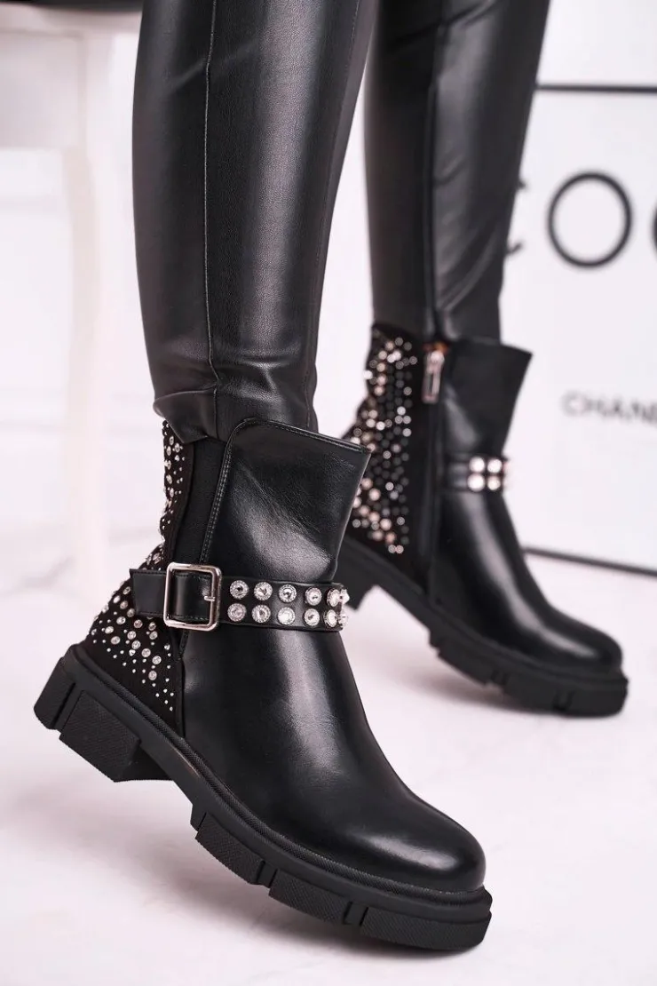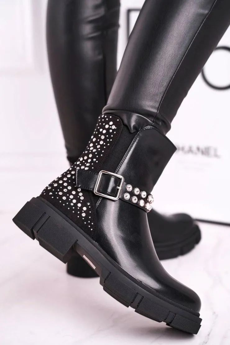 Damskie Boto Botki Damskie Z Cyrkoniami Czarne Giuliana