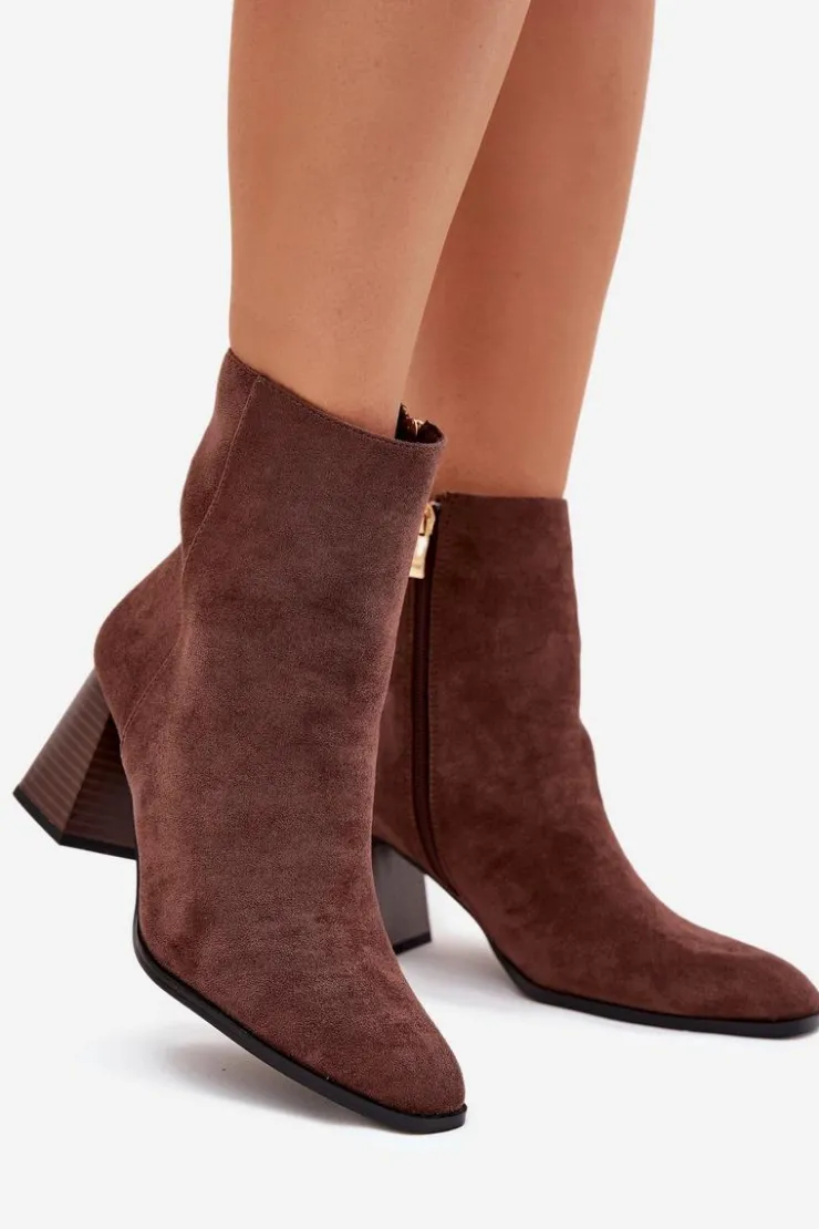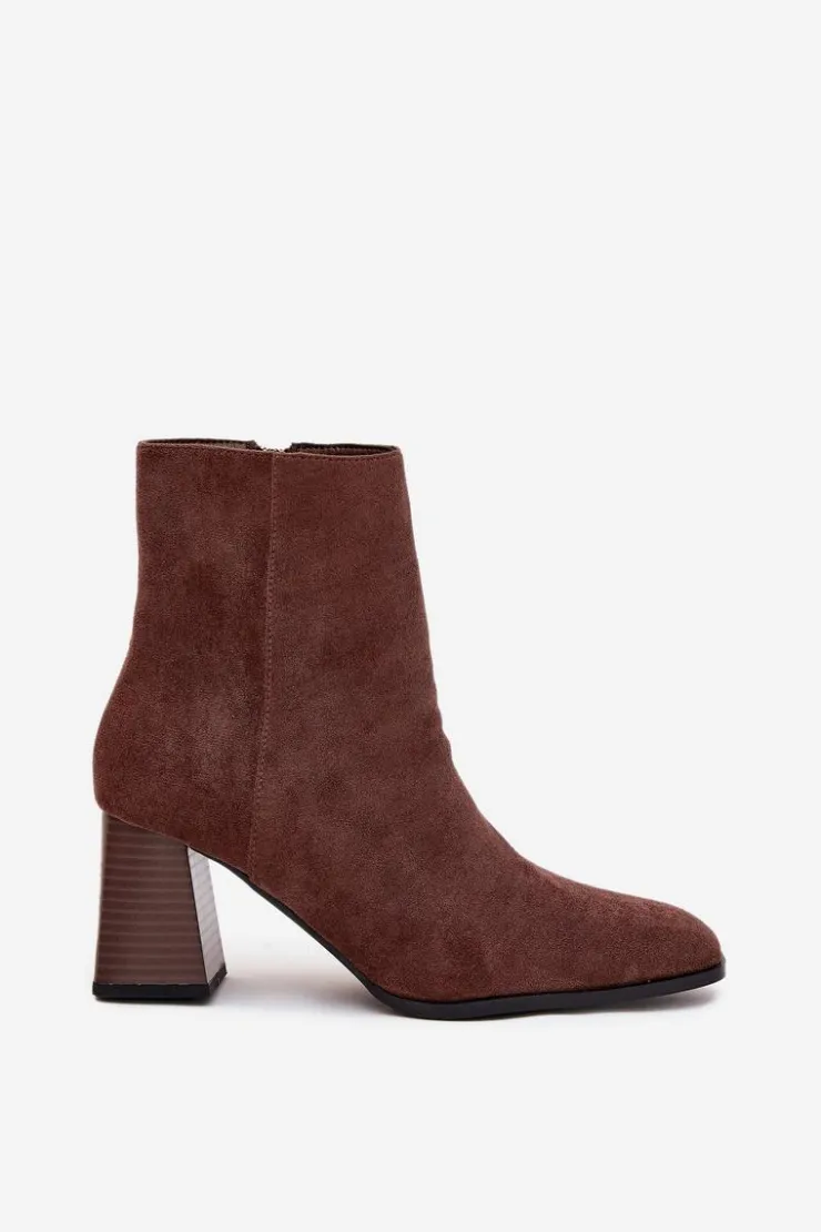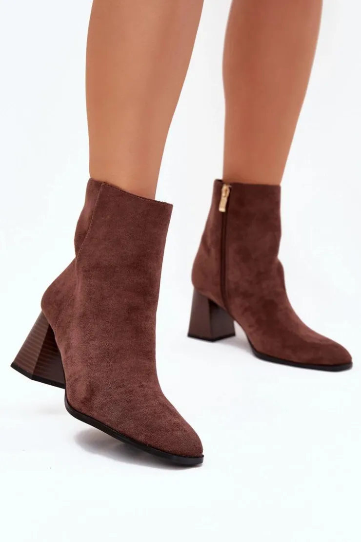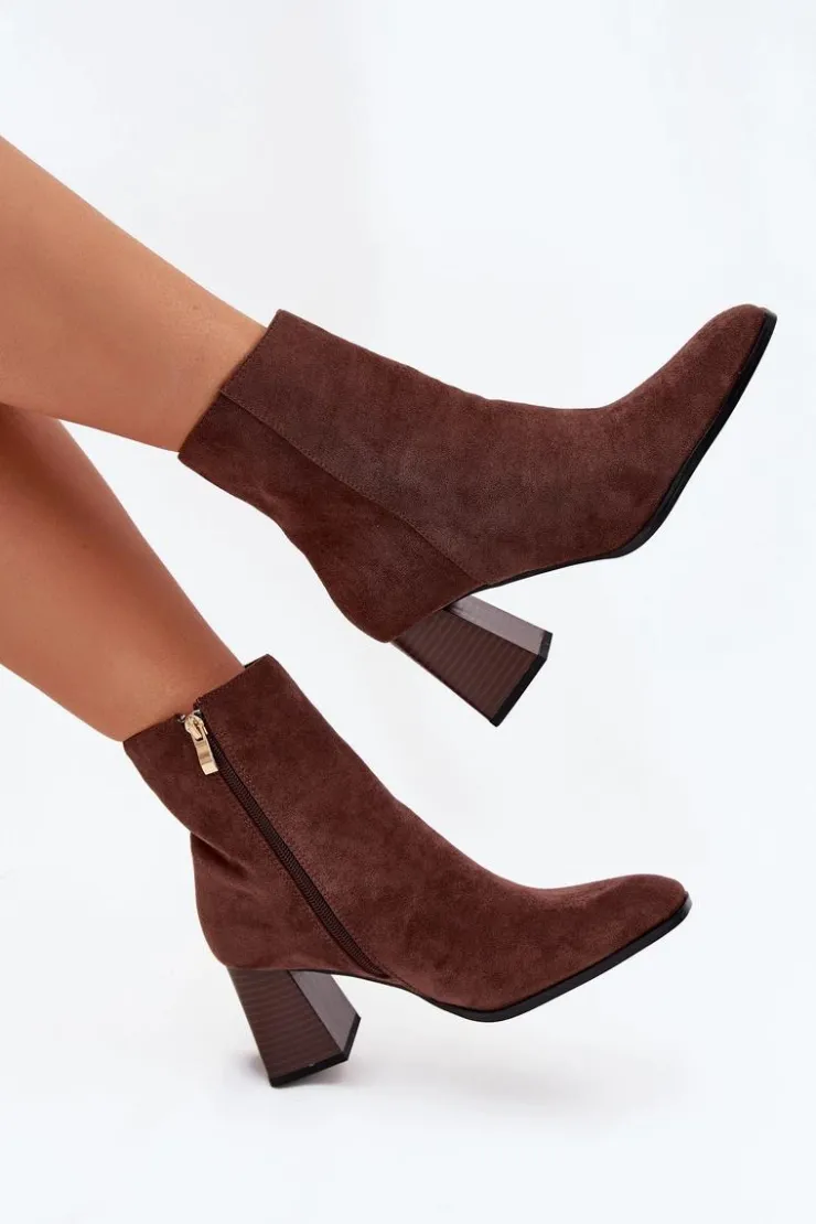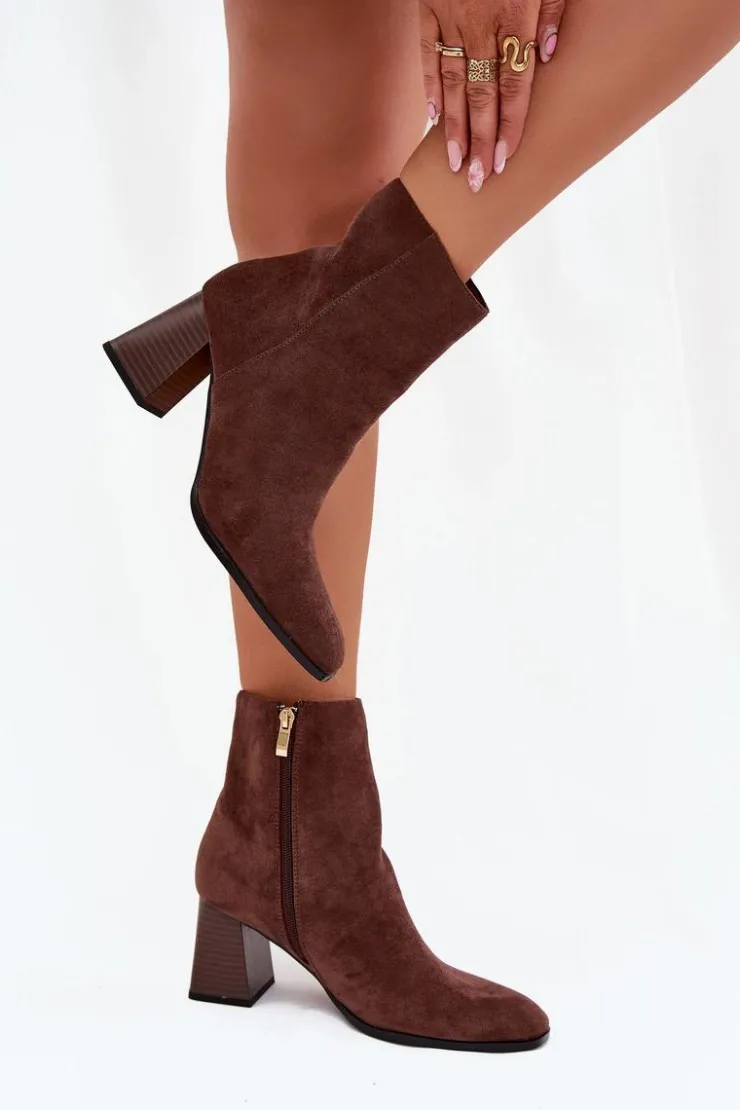Botki damskie z eko zamszu, osadzone na obcasie w formie słupka, to elegancka propozycja na chłodniejsze dni. Zapinane na zamek, zapewniają łatwość zakładania i idealne dopasowanie do stopy. Noski są delikatnie zaokrąglone, co dodaje im subtelności i komfortu. Idealne do codziennych stylizacji, świetnie komponują się z sukienkami, spódnicami czy spodniami, łącząc styl z wygodą. Przy wyborze rozmiaru prosimy sugerować się tabelą rozmiarów.