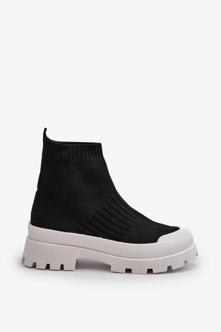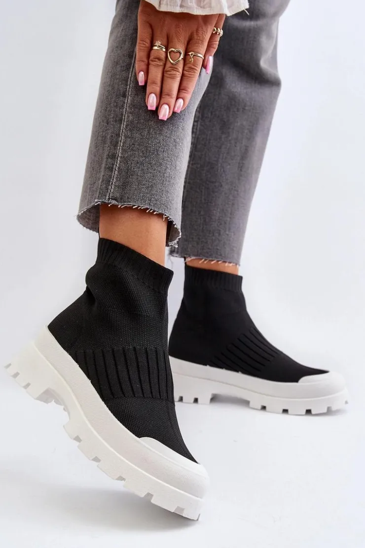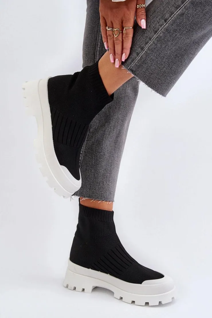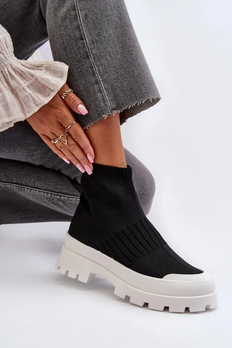 Damskie Boto Botki Damskie Ze Skarpetkową Cholewką Wsuwane Czarne Fiename