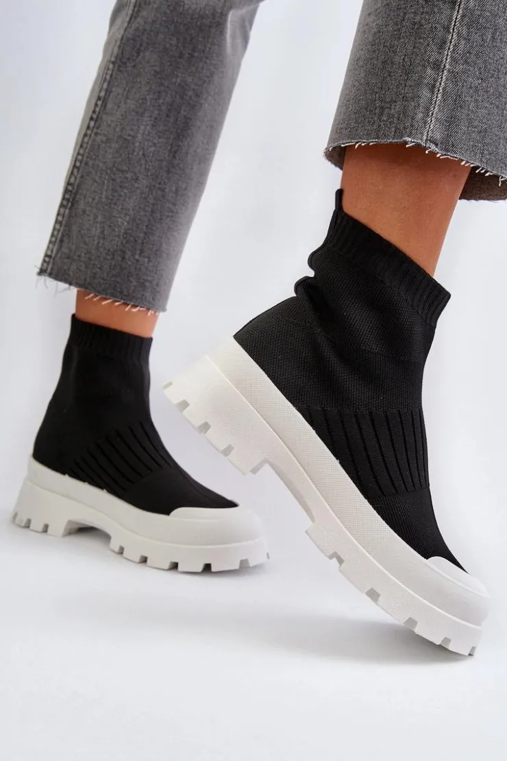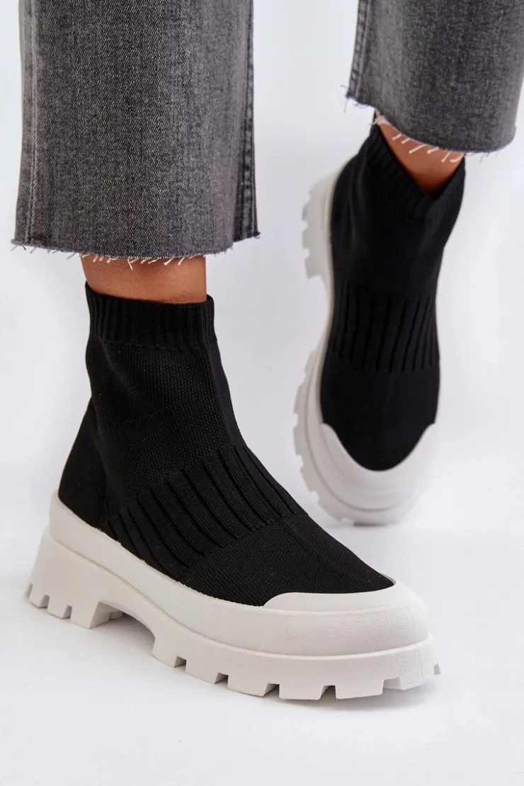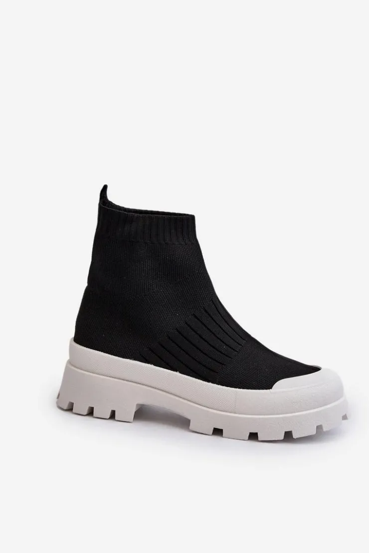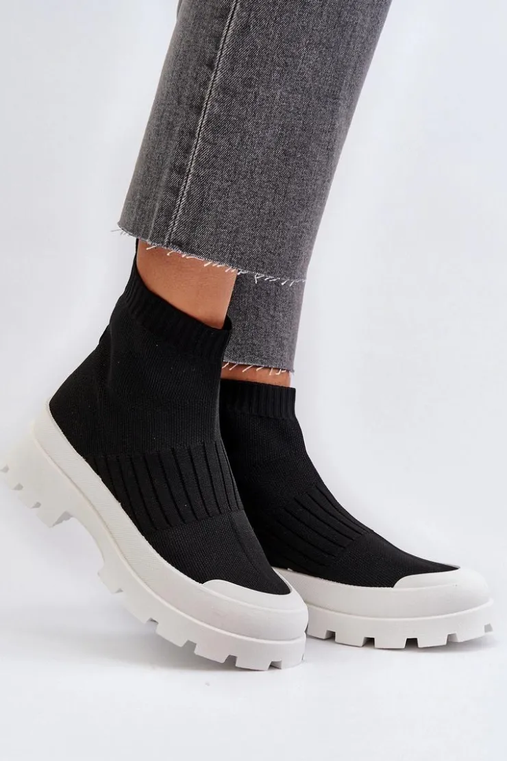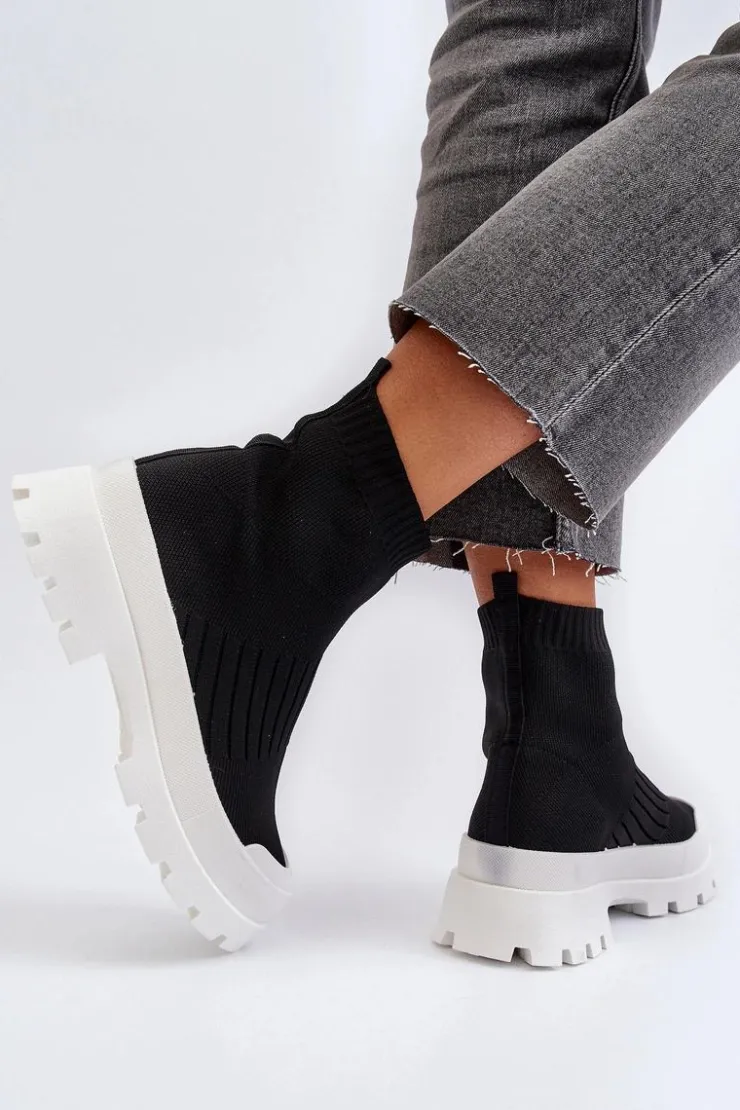 Damskie Boto Botki Damskie Ze Skarpetkową Cholewką Wsuwane Czarne Fiename