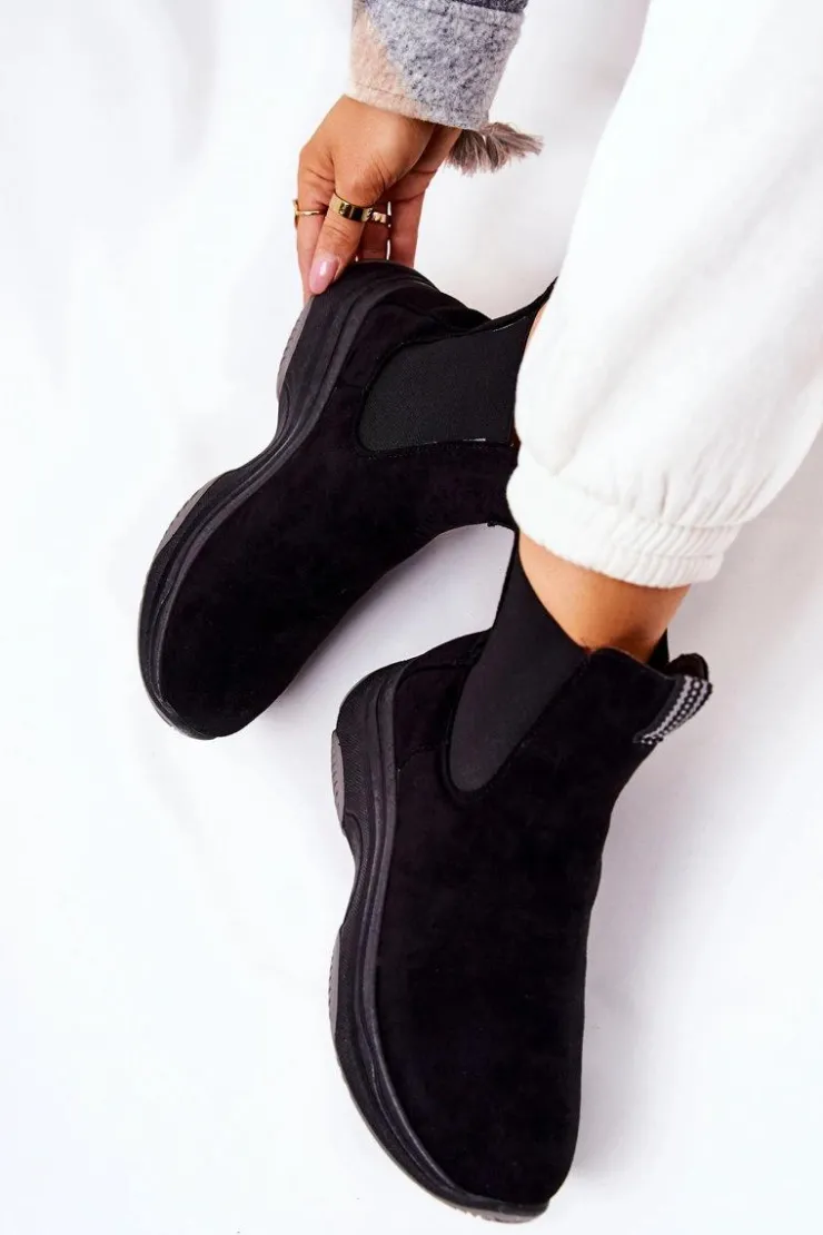 Botki na platformie zostały wykonane z miłego w dotyku eko zamszu. Na cholewce znajdują się ściągacze, które dopasują się do tęgości cholewki. Buty nie są ocieplane. Botki na stabilnej podeszwie zapewnią komfort i wygodę. Będą pasować do wielu jesienno-zimowych stylizacji. Koniecznie sprawdź także pozostałe nasze modele botków! Przy wyborze rozmiaru prosimy sugerować się tabelą rozmiarów.