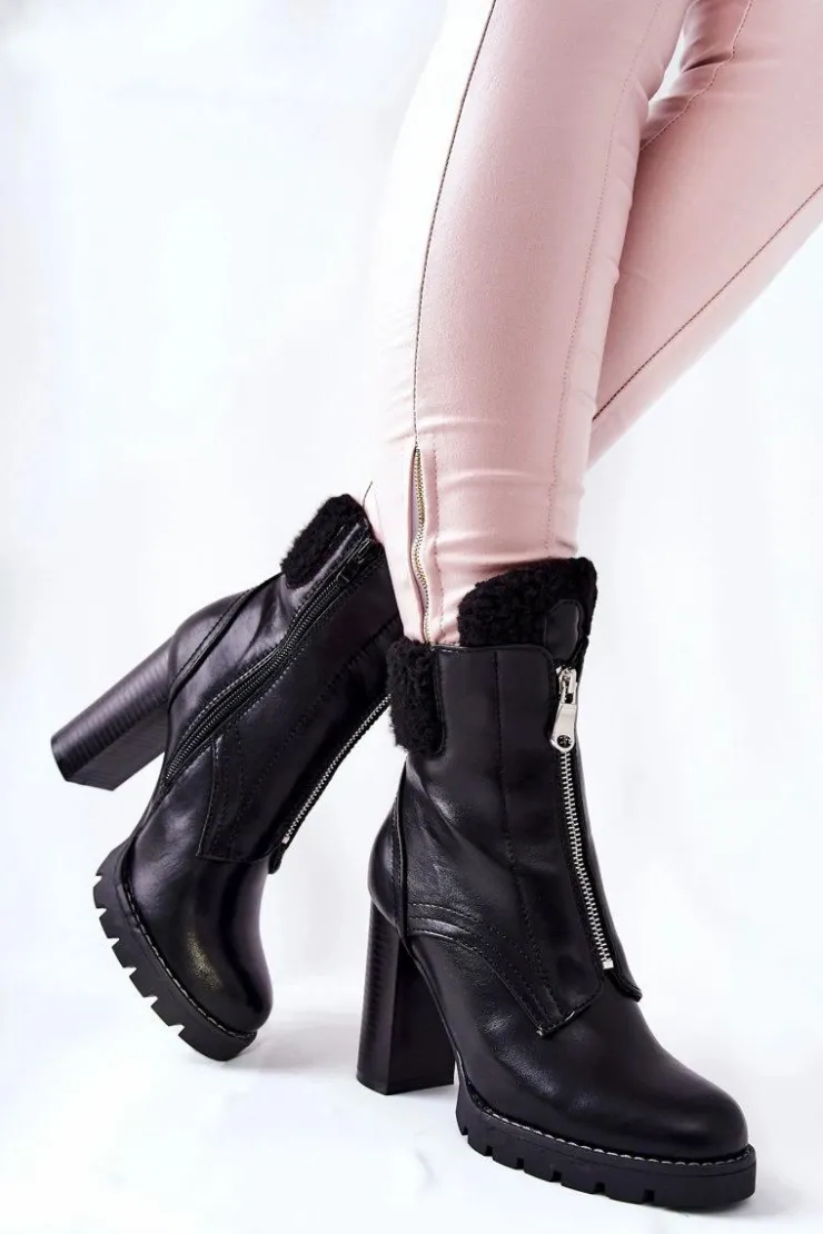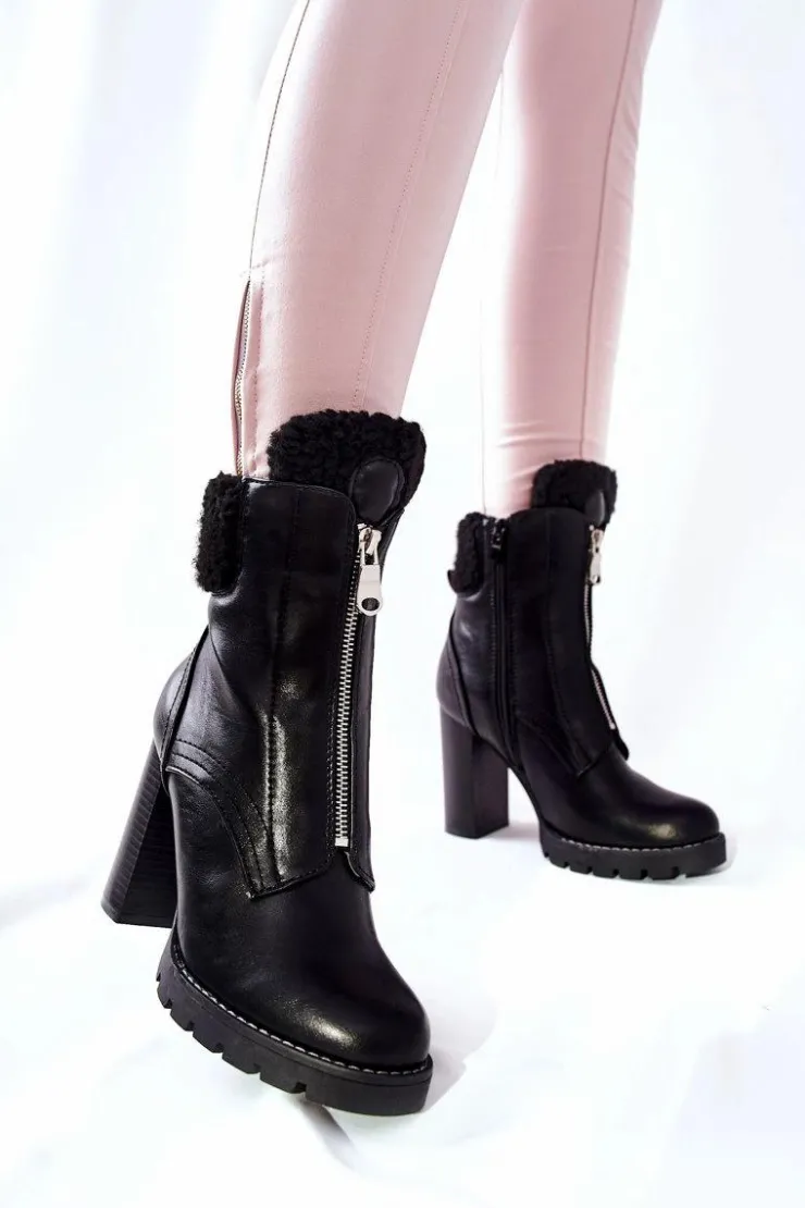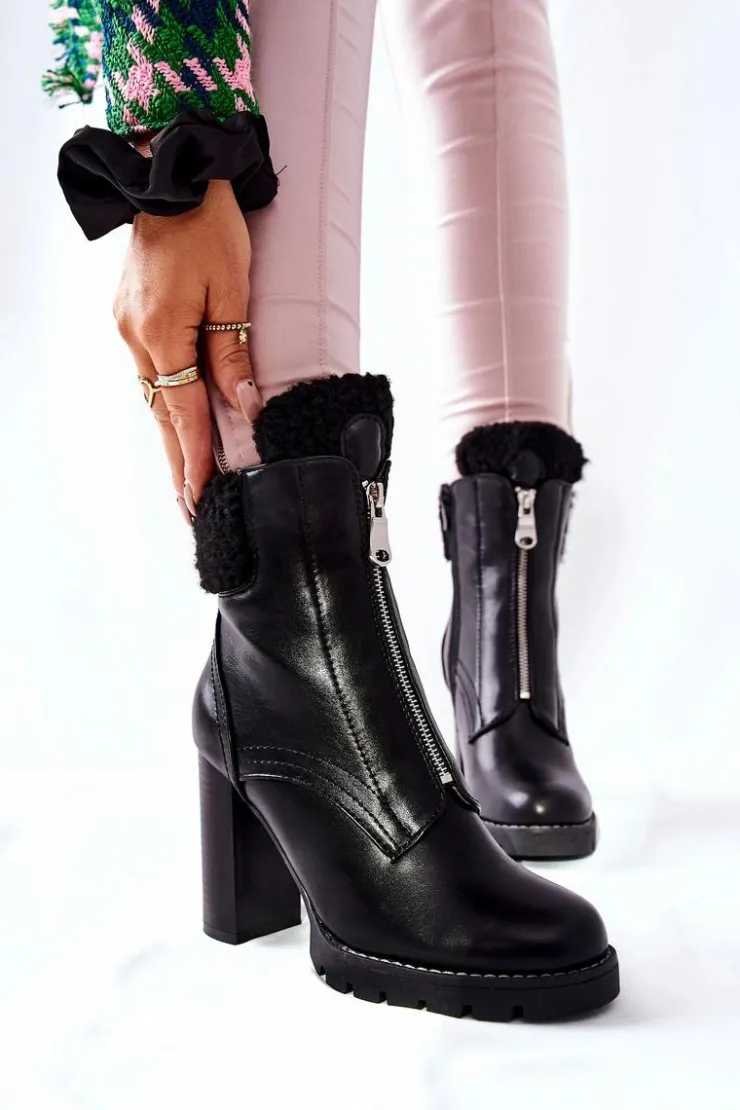 Czarne botki to hit tego sezonu! Wnętrze butów wyścielone miłym w dotyku kocem obuwniczym! Suwak na boku ułatwi zakładanie! Na górze cholewki znajduje się ciepły kożuch. Obcas w postaci słupka. Podczas wyboru rozmiaru prosimy kierować się tabelą rozmiarów.