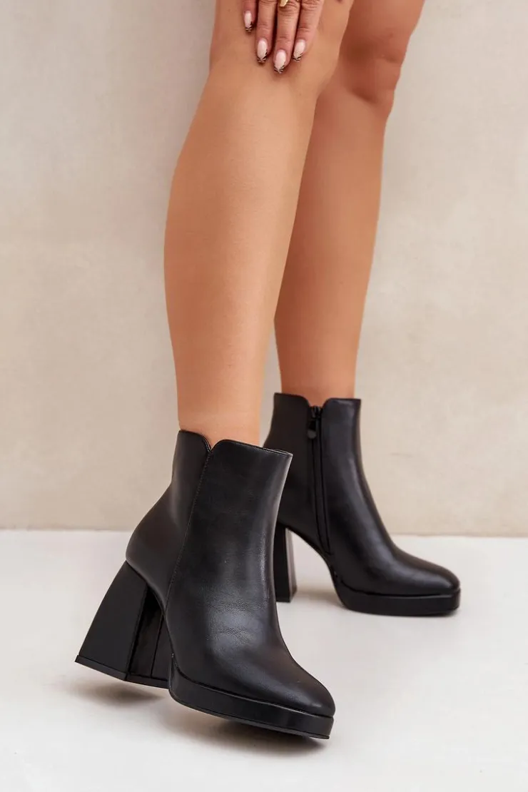 Botki damskie wykonane z eko skóry, osadzone na stabilnym słupkowym obcasie. Zapinane na zamek dla wygody użytkowania. Wnętrze ocieplane, co zapewnia komfort i ciepło w chłodniejsze dni. Uniwersalny model, który świetnie sprawdzi się w codziennych stylizacjach. Przy wyborze rozmiaru prosimy sugerować się tabelą rozmiarów.